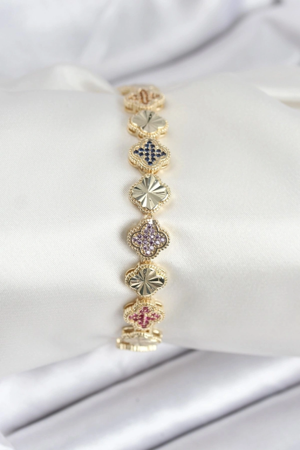 Pirinç VIP Seri Yonca Zirkon Taşlı Kadın Bileklik