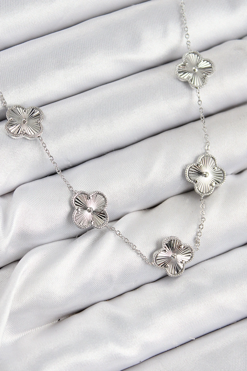 Pirinç Vıp Yonca Model Gümüş Renk Kadın Kolye
