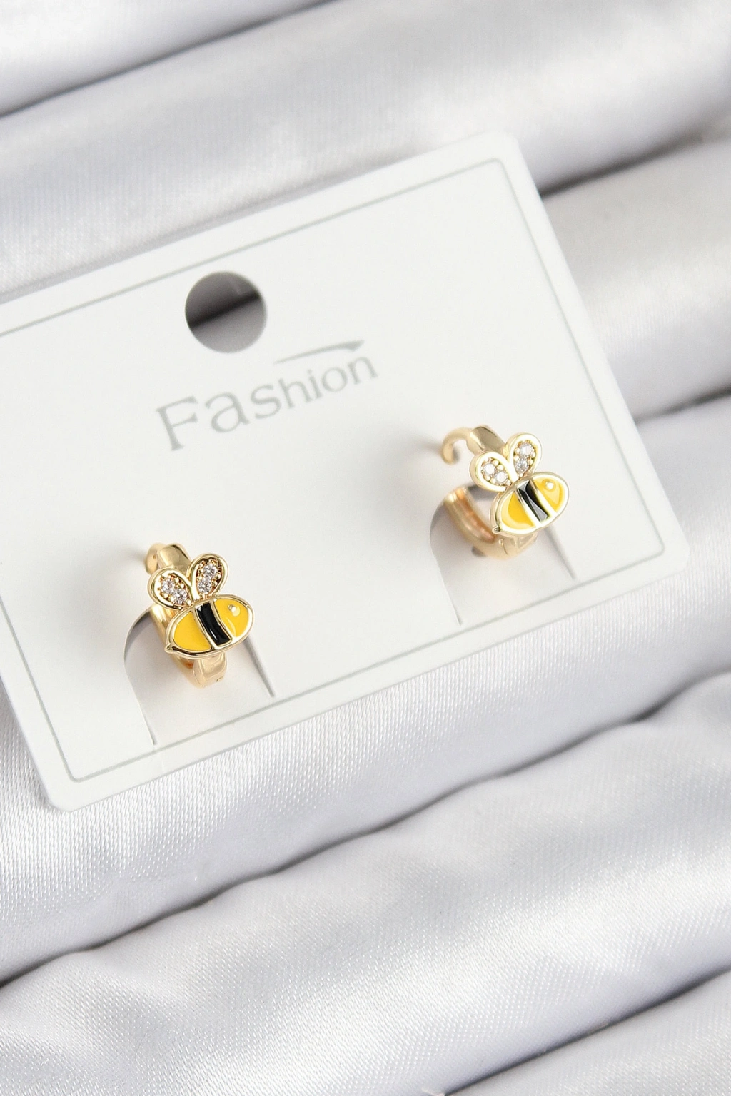 Pirinç Zirkon Taşlı Arı Model Gold Renk Çocuk Küpe