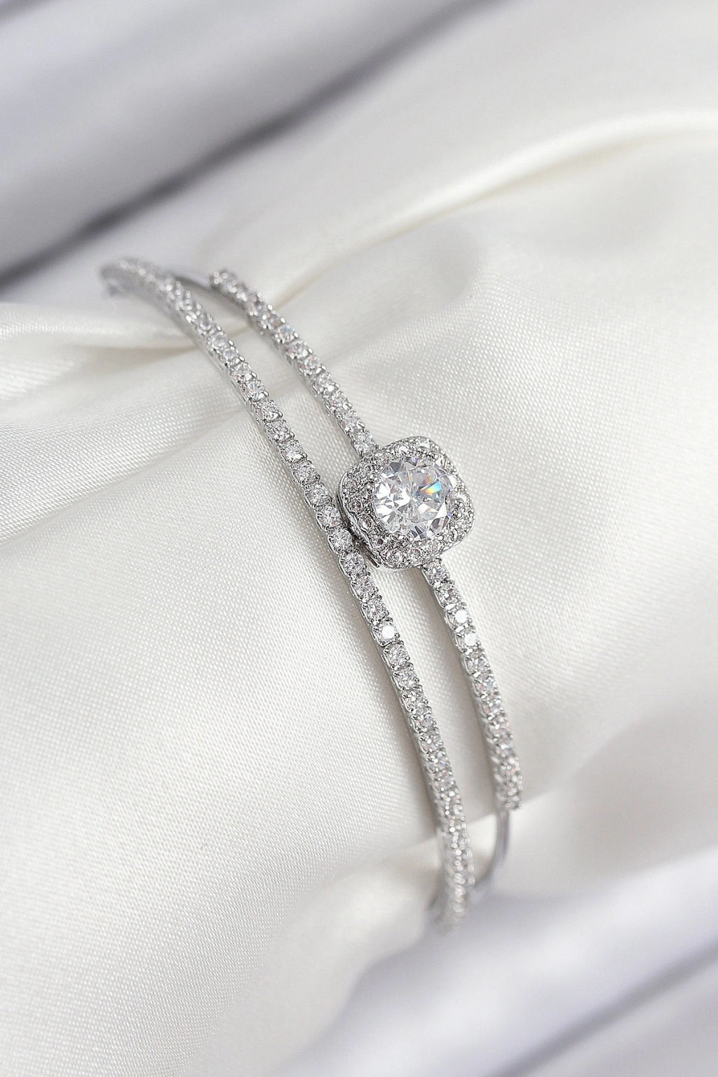 Pirinç Zirkon Taşlı Baget Model Gümüş Renk Kadın Bileklik