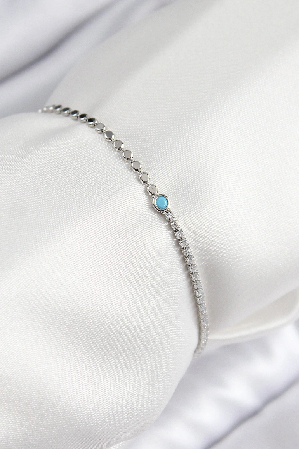 Pirinç Zirkon Taşlı Boncuk Model Ezme Zincir Gümüş Renk Kadın Bileklik