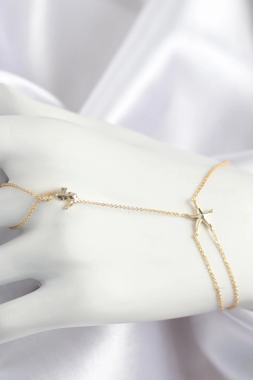 Pirinç Zirkon Taşlı Deniz Atı Ve Yıldız Model Gold Renk Şahmeran