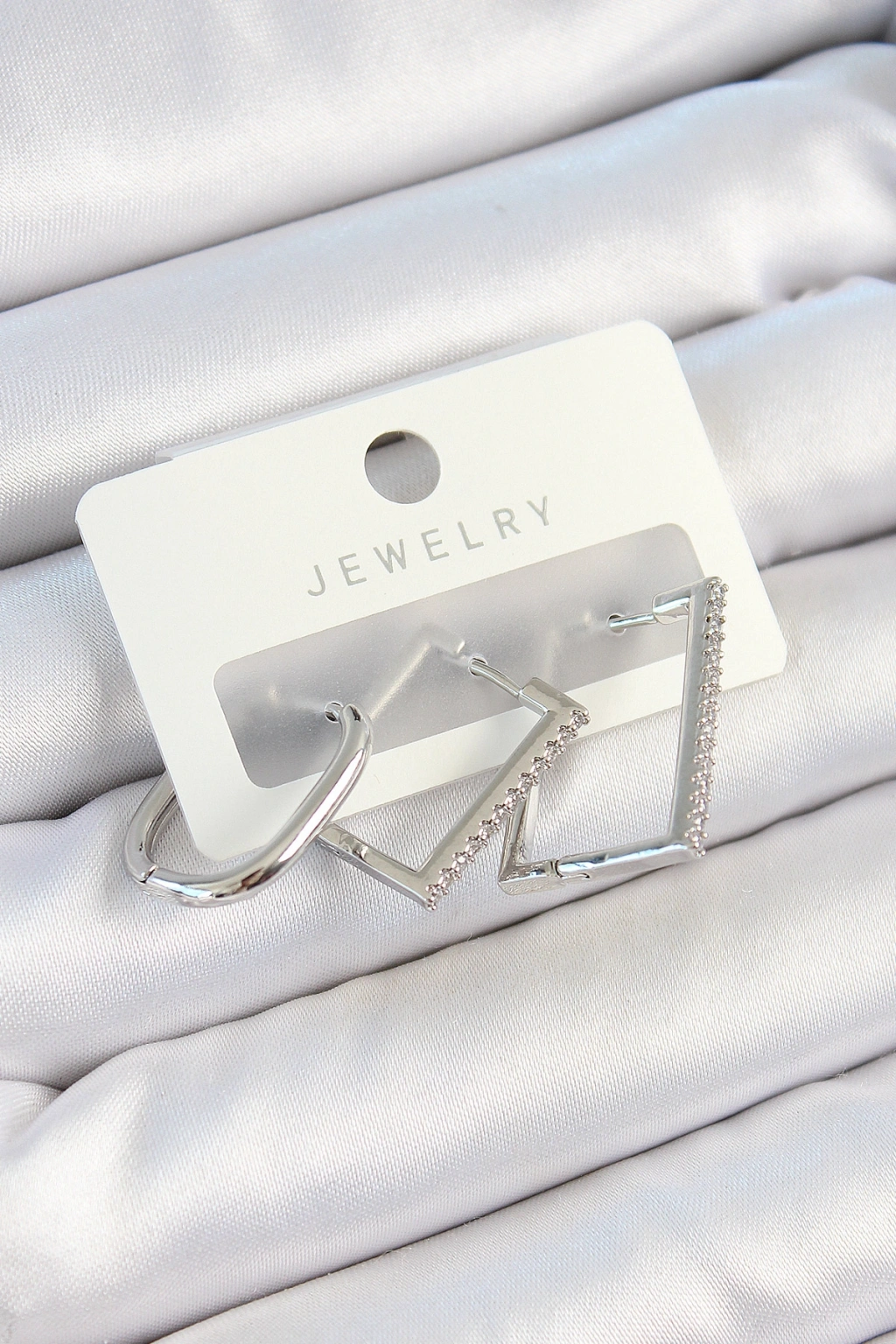 Pirinç Zirkon Taşlı Dikdörtgen Model Gümüş Renk 3'lü Çift Kadın Küpe Set