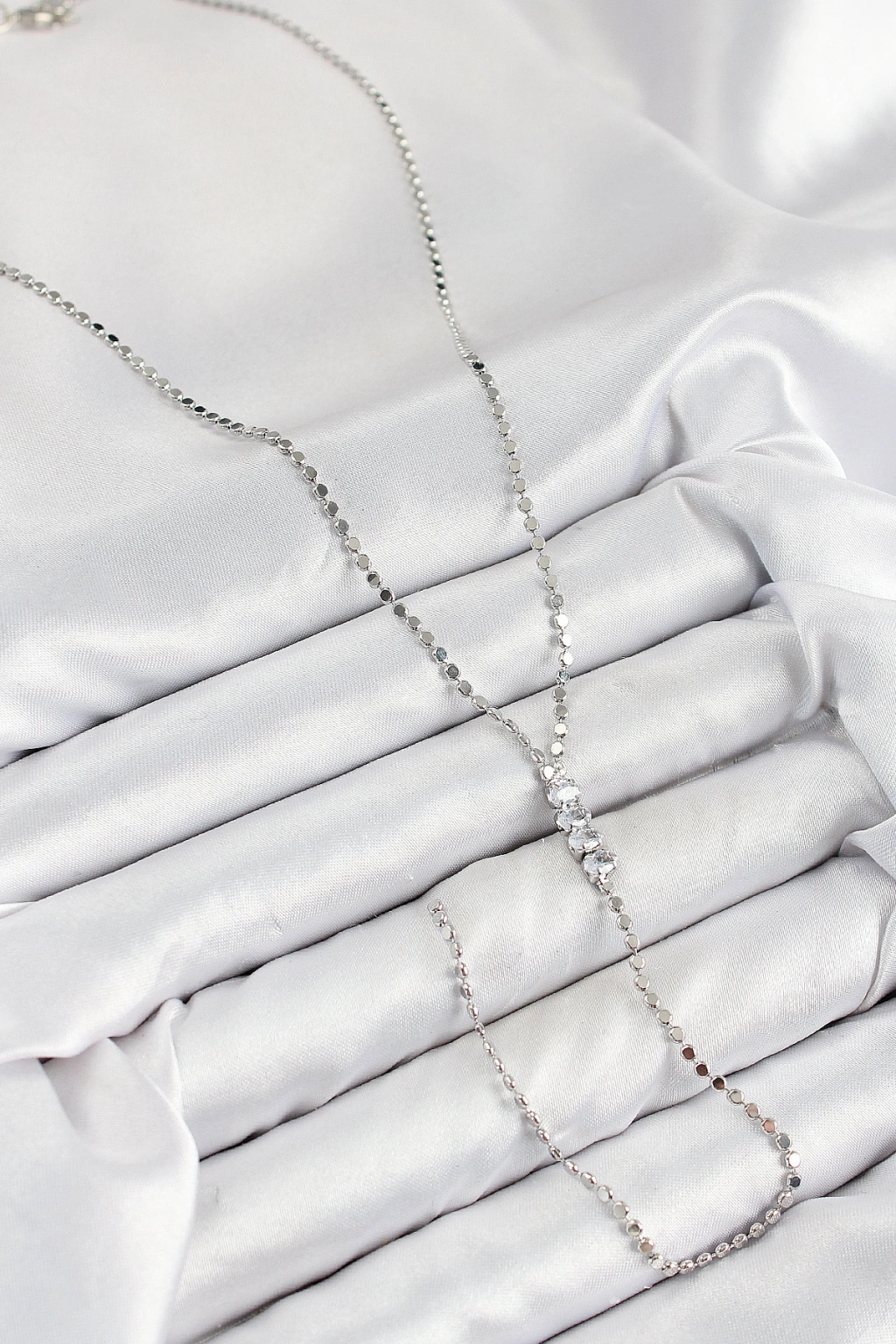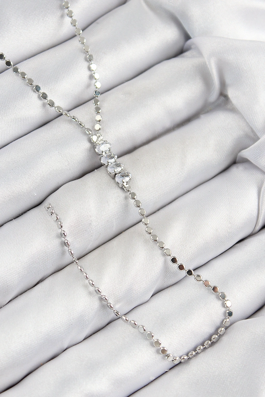 Pirinç Zirkon Taşlı Ezme Zincirli Model Gümüş Renk Y Kolye