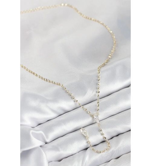 Pirinç Zirkon Taşlı Gold Renk Kadın Y Kolye