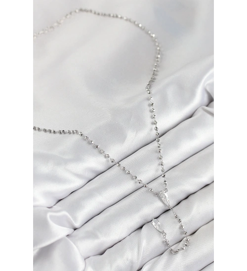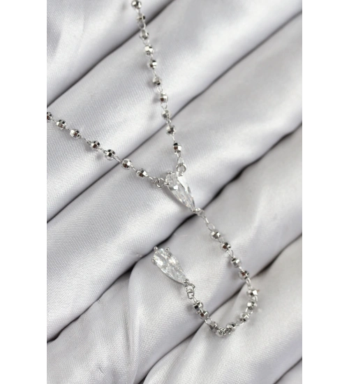 Pirinç Zirkon Taşlı Gümüş Renk Kadın Y Kolye