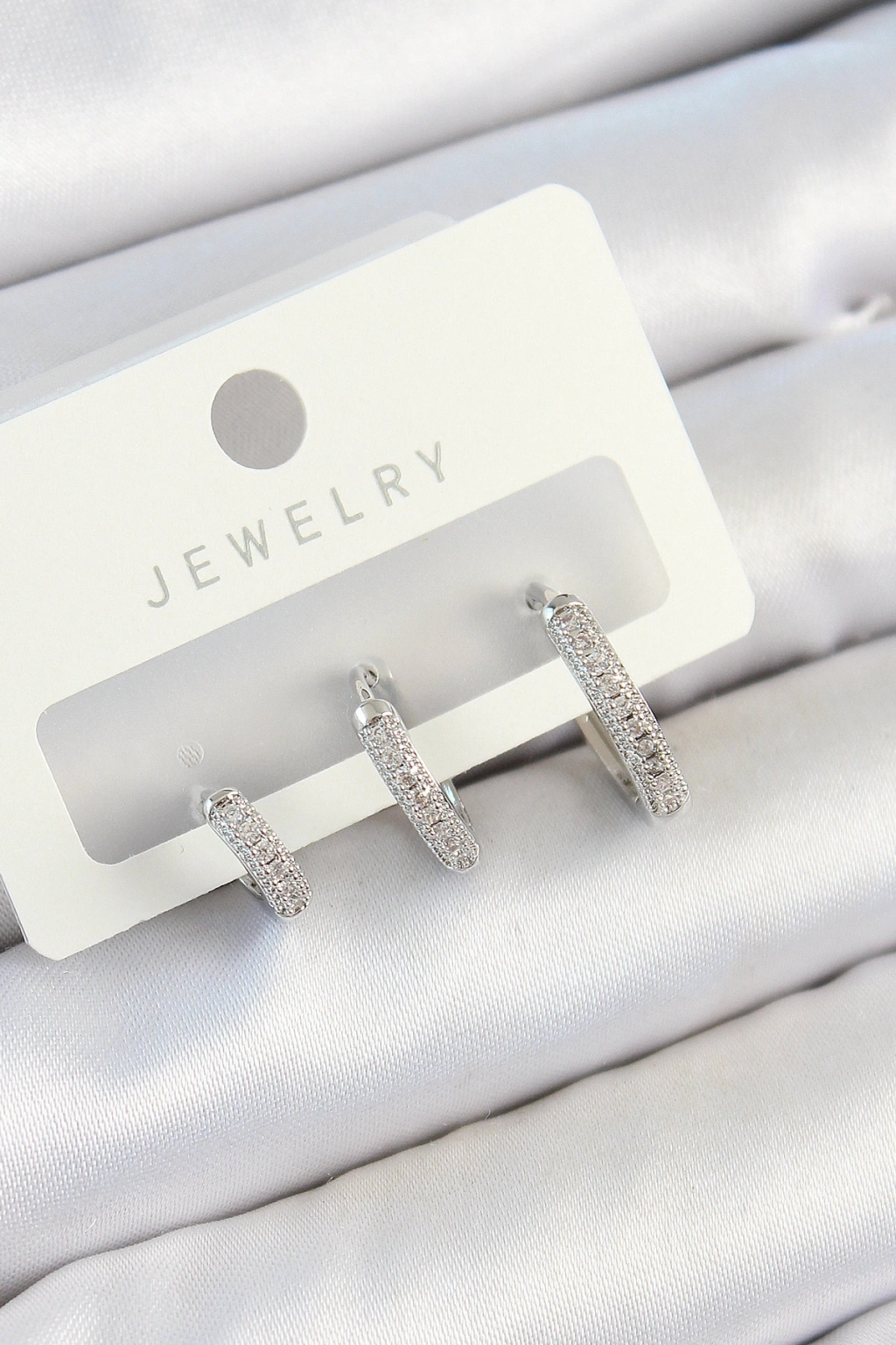 Pirinç Zirkon Taşlı Halka Model Gümüş Renk 3'lü Çift Kadın Küpe Set