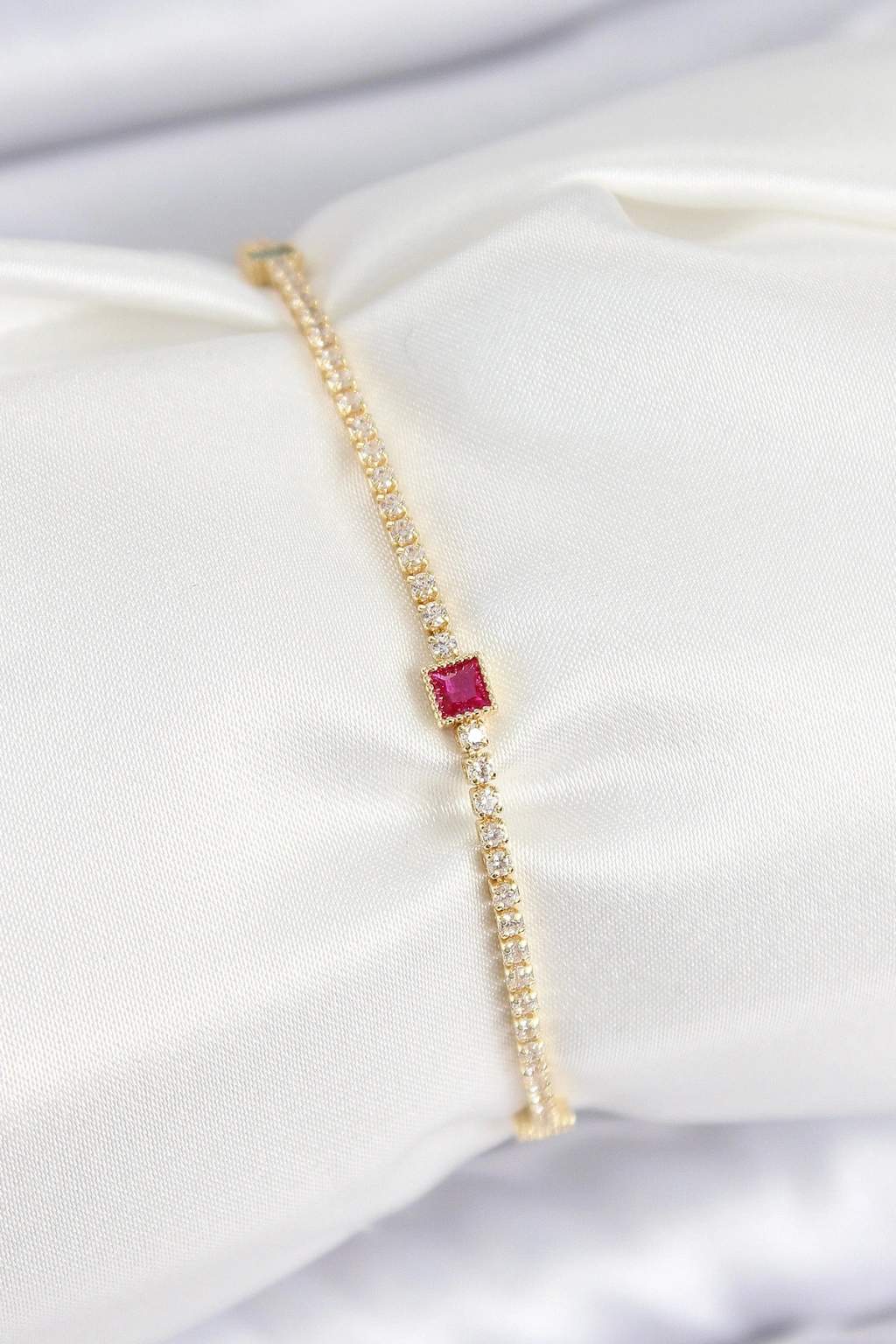 Pirinç Zirkon Taşlı Kare Model Gold Renk Kadın Bilekilk