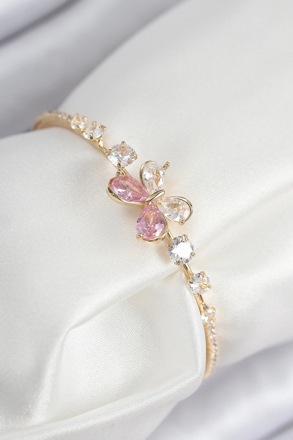 Pirinç Zirkon Taşlı Kelebek Model Gold Renk Kadın Bileklik