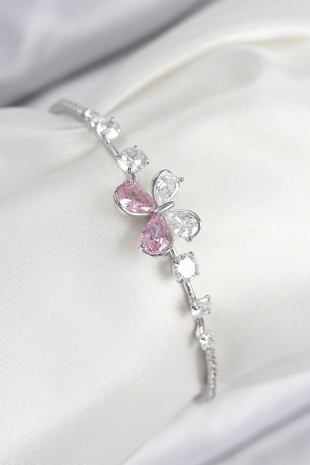 Pirinç Zirkon Taşlı Kelebek Model Gümüş Renk Kadın Bileklik
