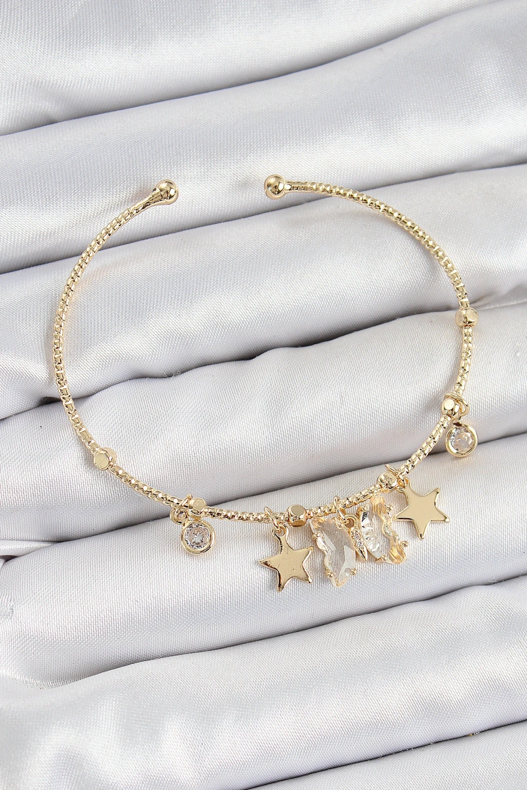 Pirinç Zirkon Taşlı Kelebek Ve Yıldız Model Gold Renk Charm Bileklik