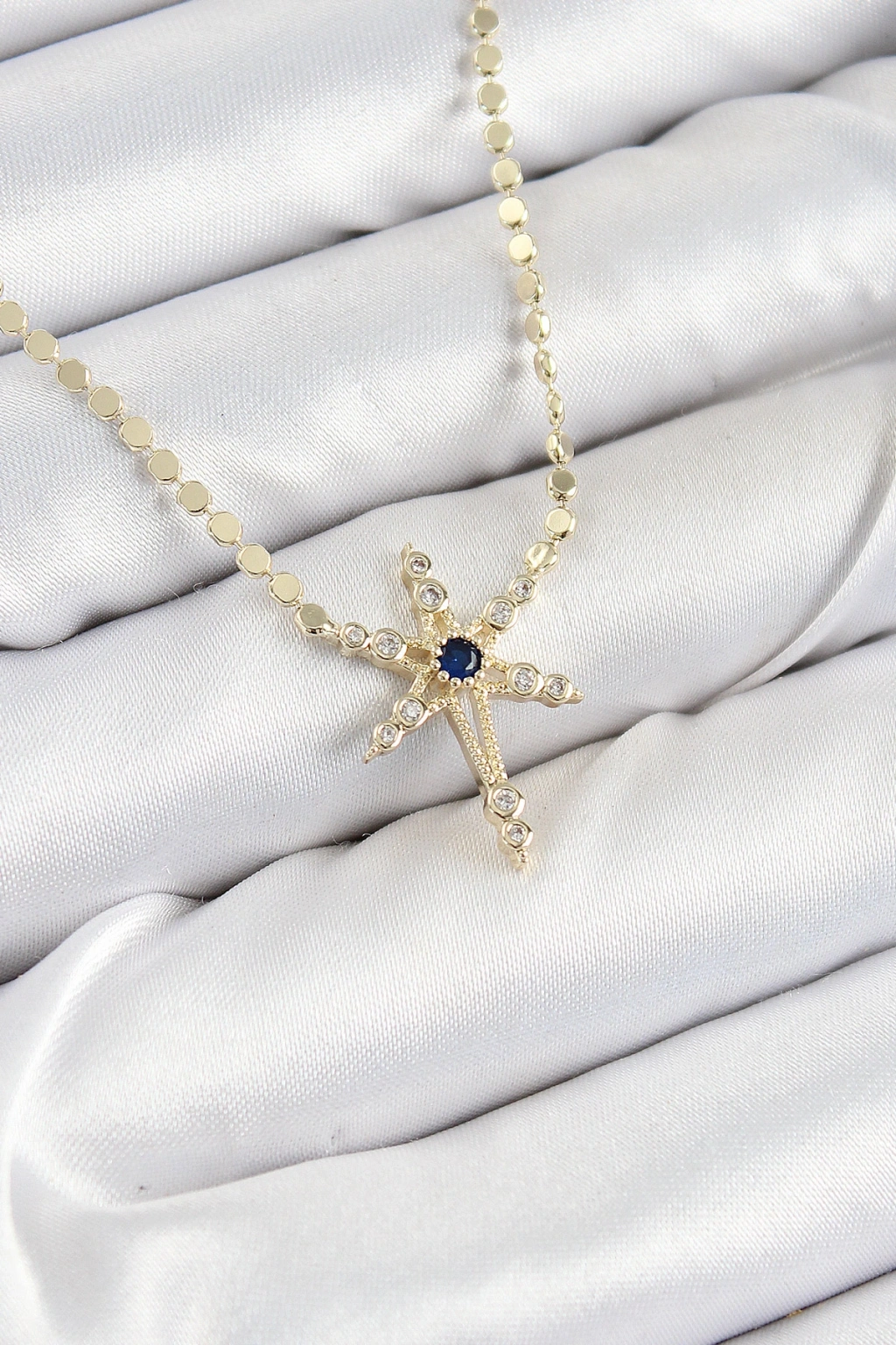 Pirinç Zirkon Taşlı Kutup Yıldızı Model Ezme Zincir Gold Renk Kadın Kolye