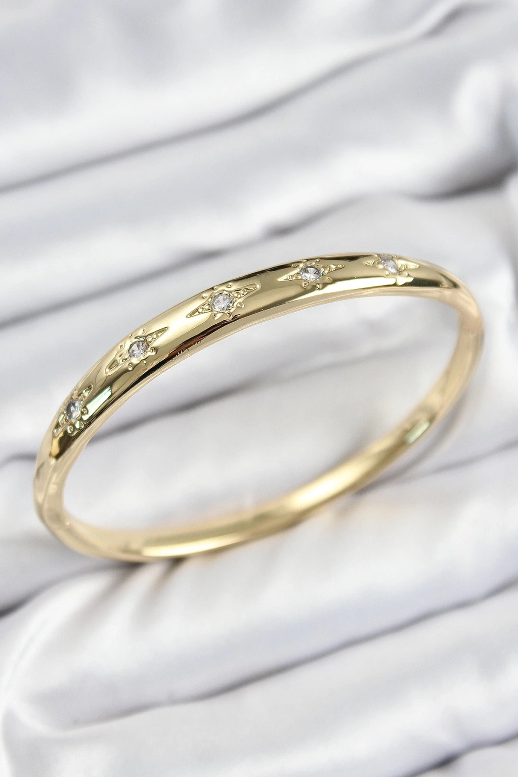 Pirinç Zirkon Taşlı Kutup Yıldızı Model Gold Renk Kadın Kelepçe
