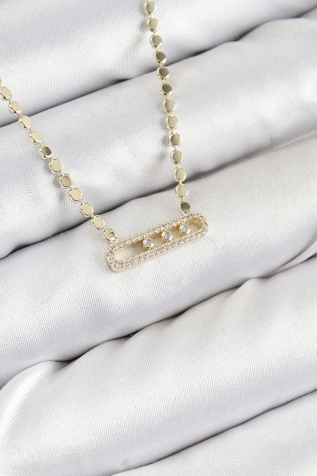 Pirinç Zirkon Taşlı Messika Model Ezme Zincir Gold Renk Kadın Kolye
