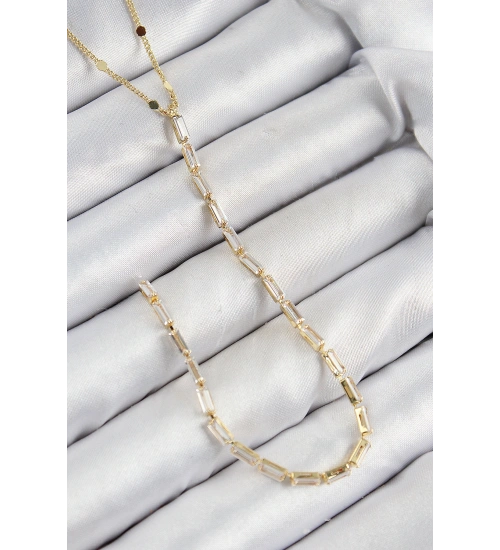 Pirinç Zirkon Taşlı Model Gold Renk Y Kolye