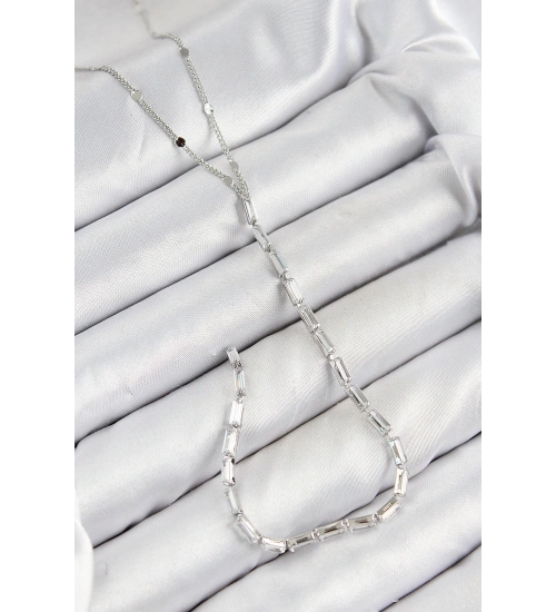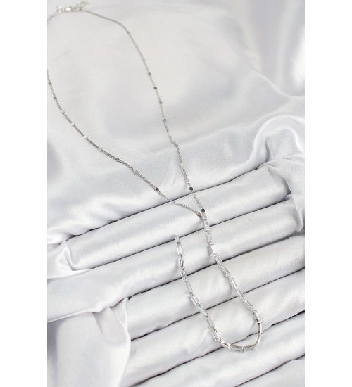 Pirinç Zirkon Taşlı Model Gümüş Renk Y Kolye