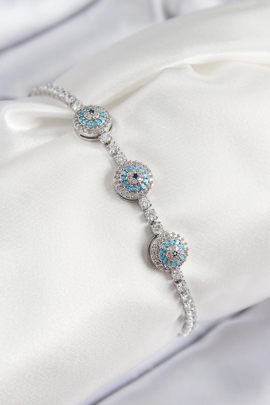 Pirinç Zirkon Taşlı Nazar Model Gümüş Renk Kadın Bileklik