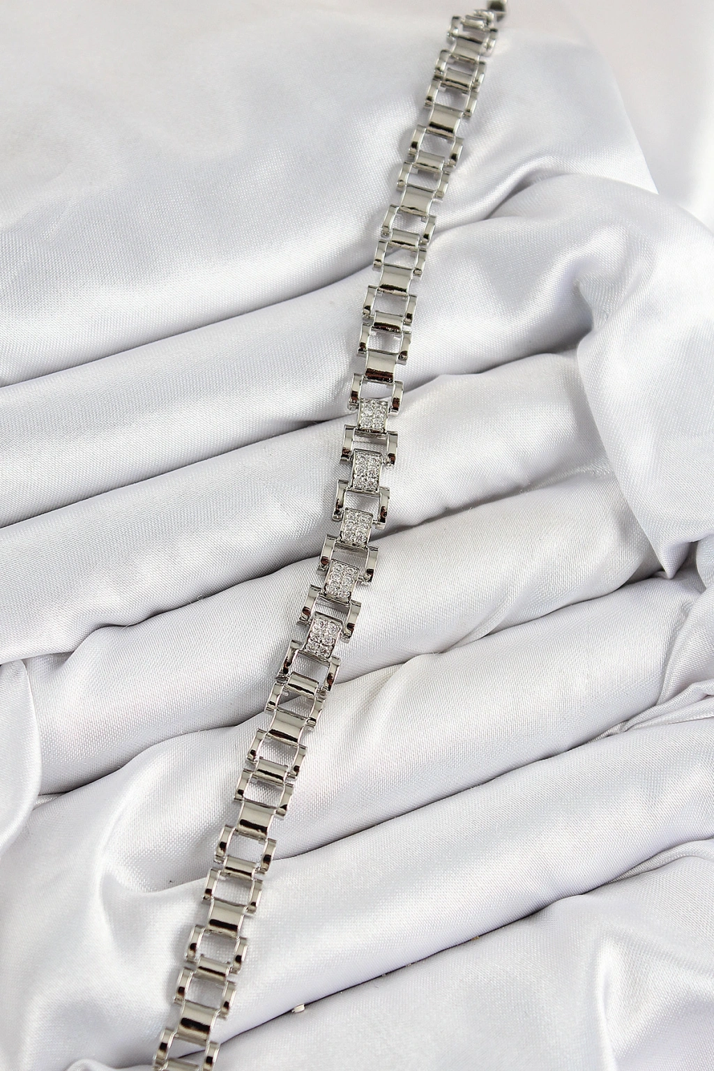 Pirinç Zirkon Taşlı Parçalı Model Gümüş Renk Kadın Bileklik