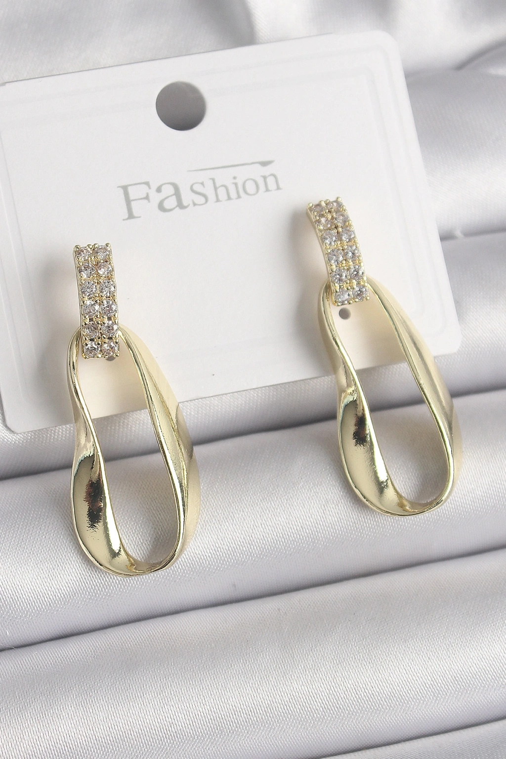 Pirinç Zirkon Taşlı Sallantı Kadın Küpe