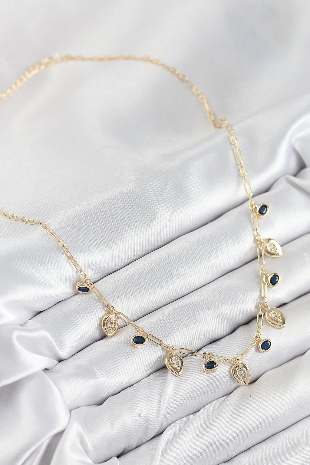 Pirinç Zirkon Taşlı Sallantılı Damla Model Gold Renk Kadın Kolye