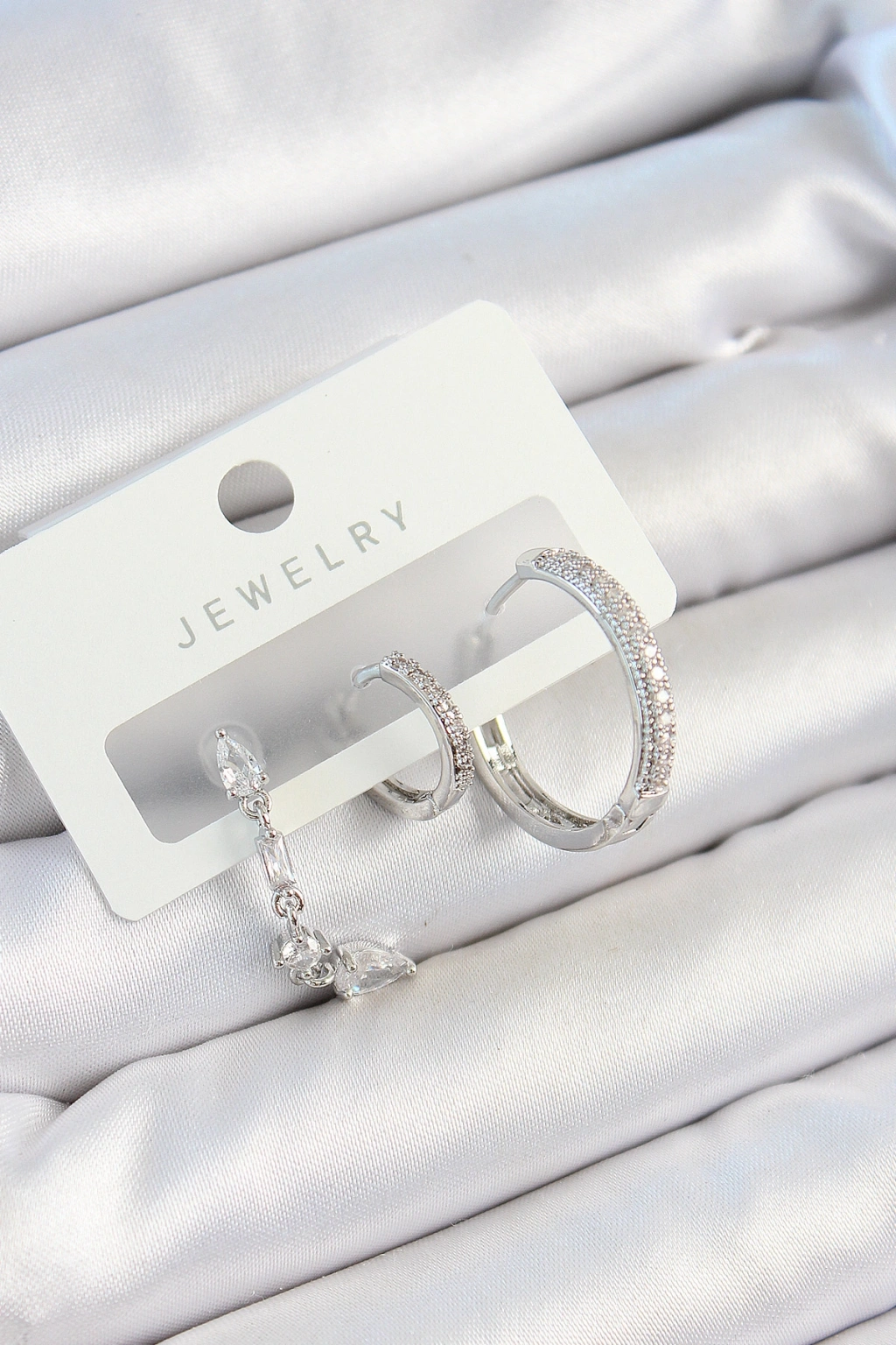 Pirinç Zirkon Taşlı Sallantılı Model Gümüş Renk 3'lü Çift Kadın Küpe Set