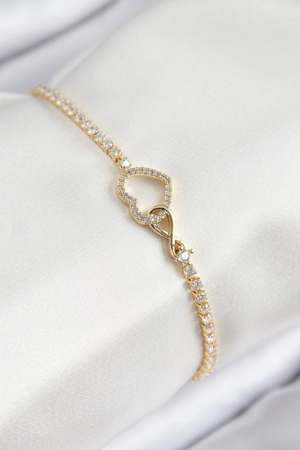 Pirinç Zirkon Taşlı Sonsuzluk Kalp Model Gold Renk Kadın Bileklik