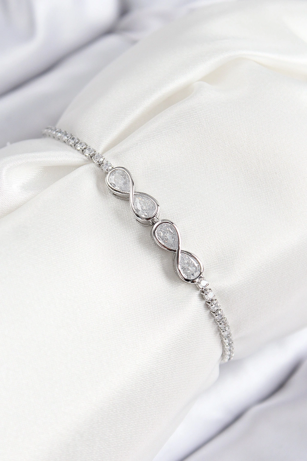 Pirinç Zirkon Taşlı Sonsuzluk Model Gümüş Renk Asansörlü Kadın Bileklik