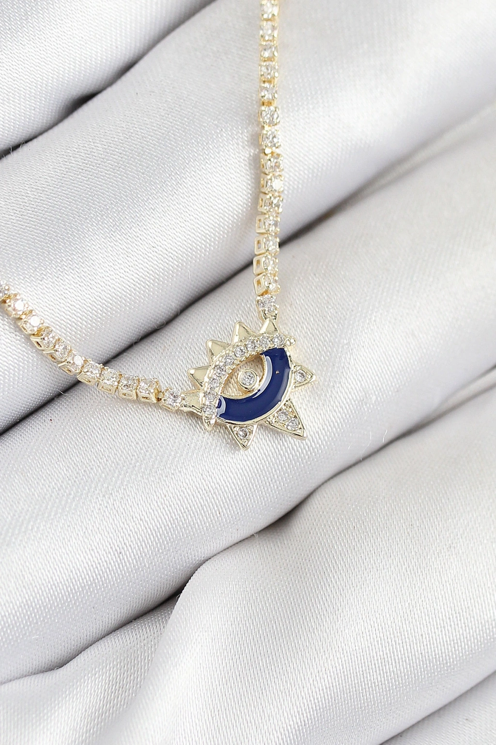 Pirinç Zirkon Taşlı Su Yolu Göz Model Gold Renk Kadın Kolye