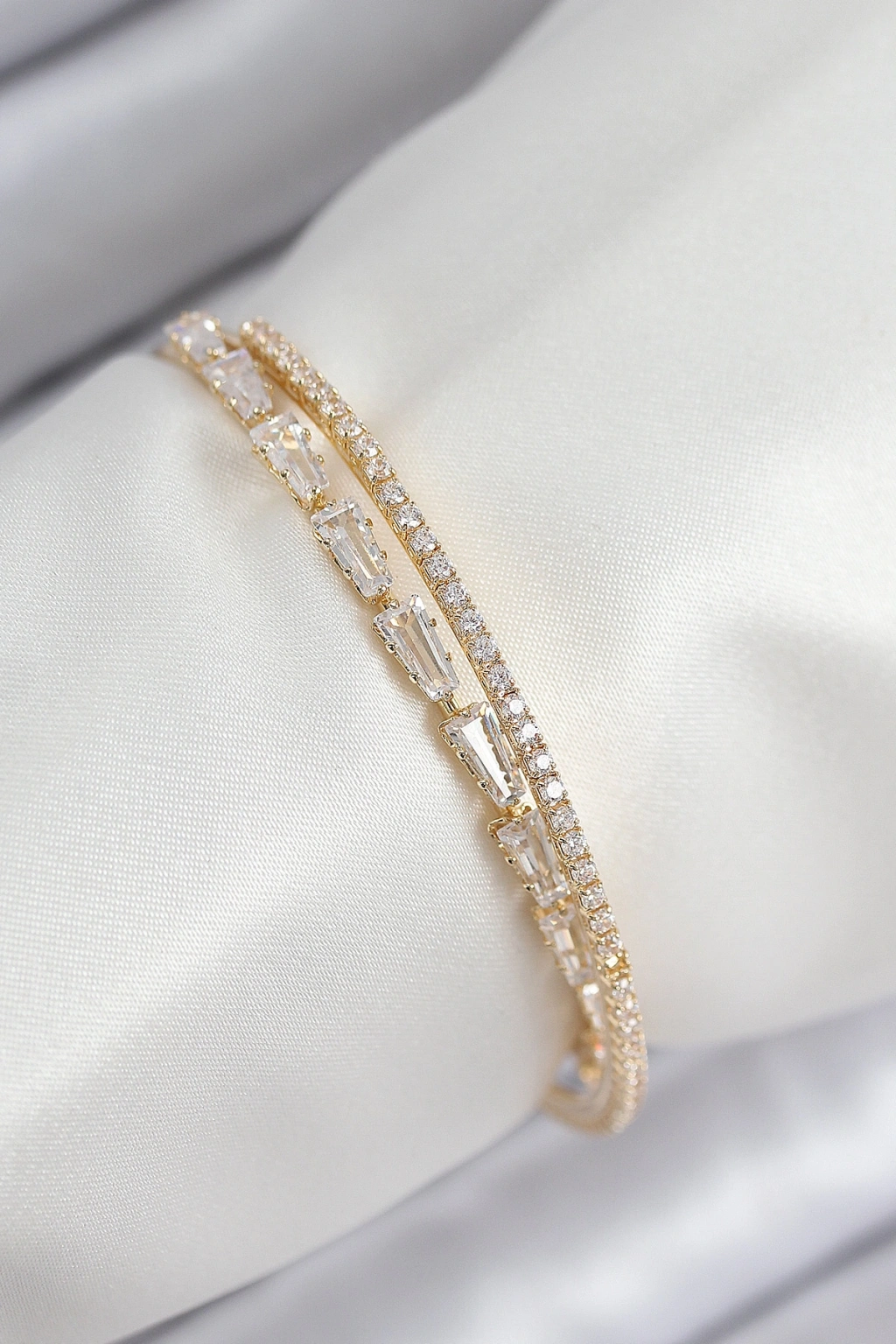 Pirinç Zirkon Taşlı Su Yolu Model Gold Renk Kadın Bileklik