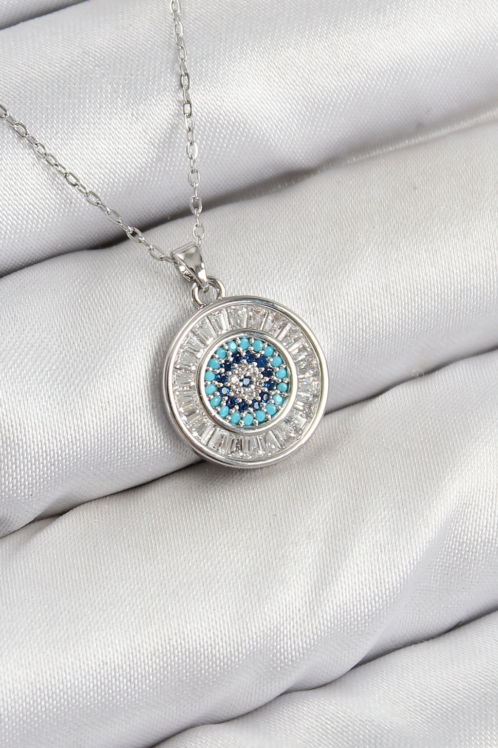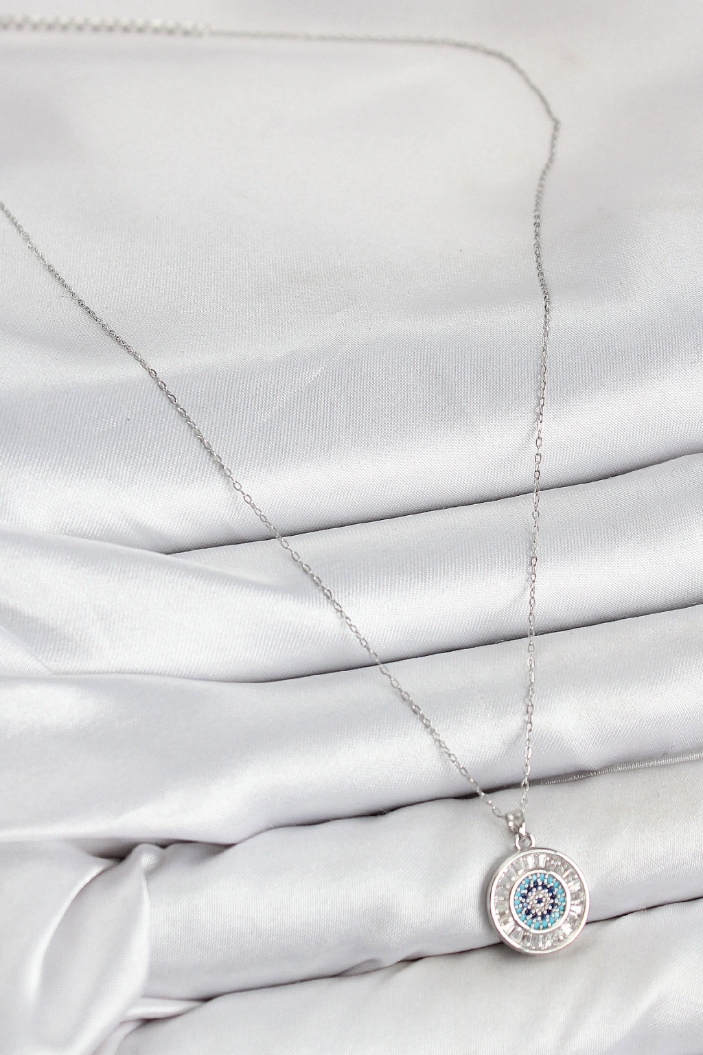 Pirinç Zirkon Taşlı Su Yolu Nazar Model Gümüş Renk Kadın Kolye