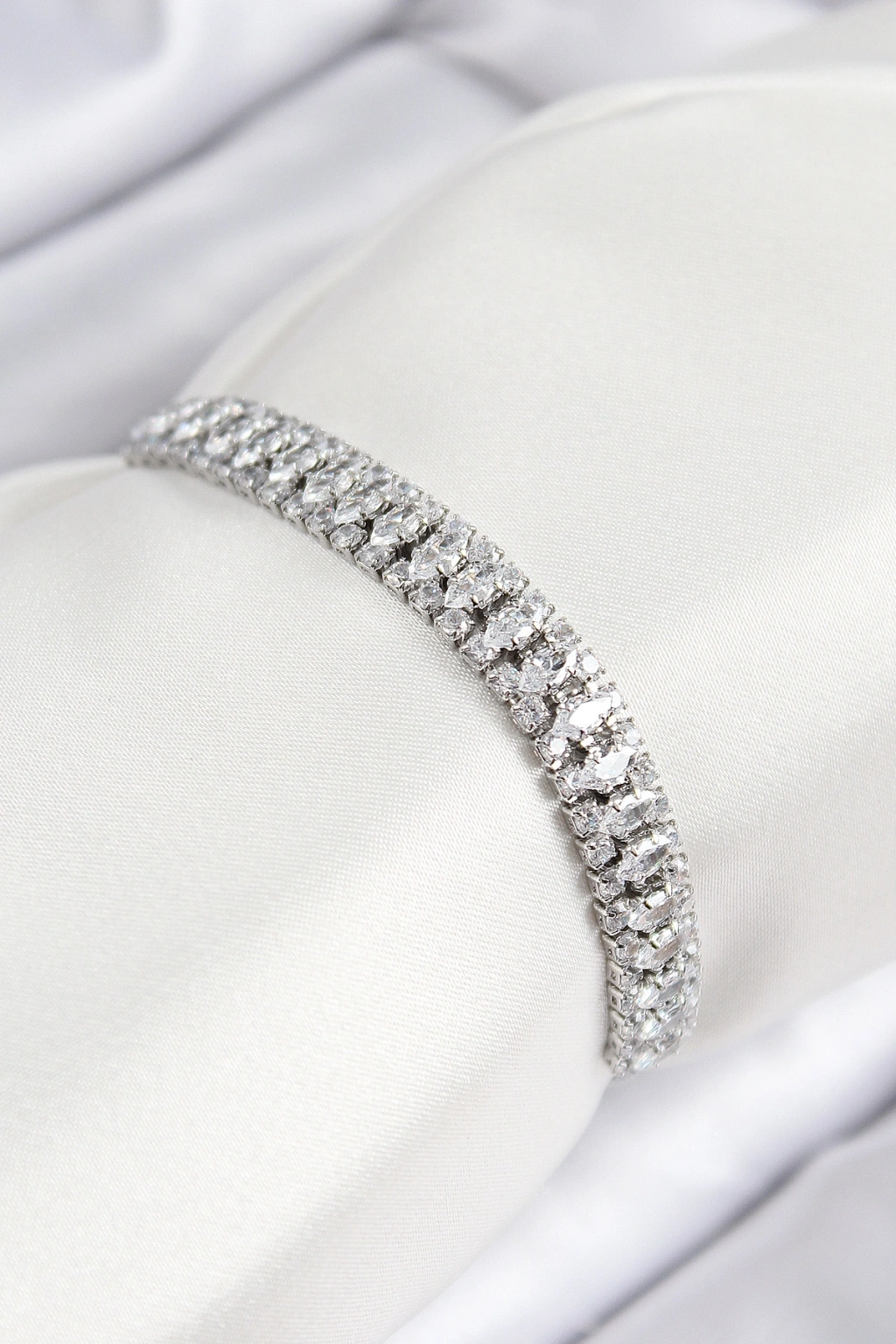 Pirinç Zirkon Taşlı Tennıs Model Gümüş Renk Asansörlü Kadın Bileklik