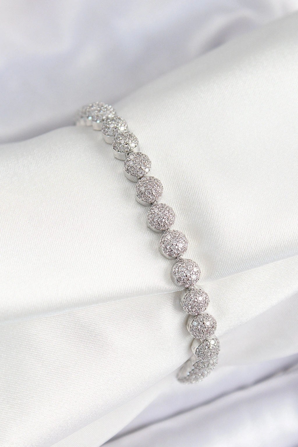 Pirinç Zirkon Taşlı Yarım Topcuk Model Gümüş Renk Vıp Seri Kadın Bileklik
