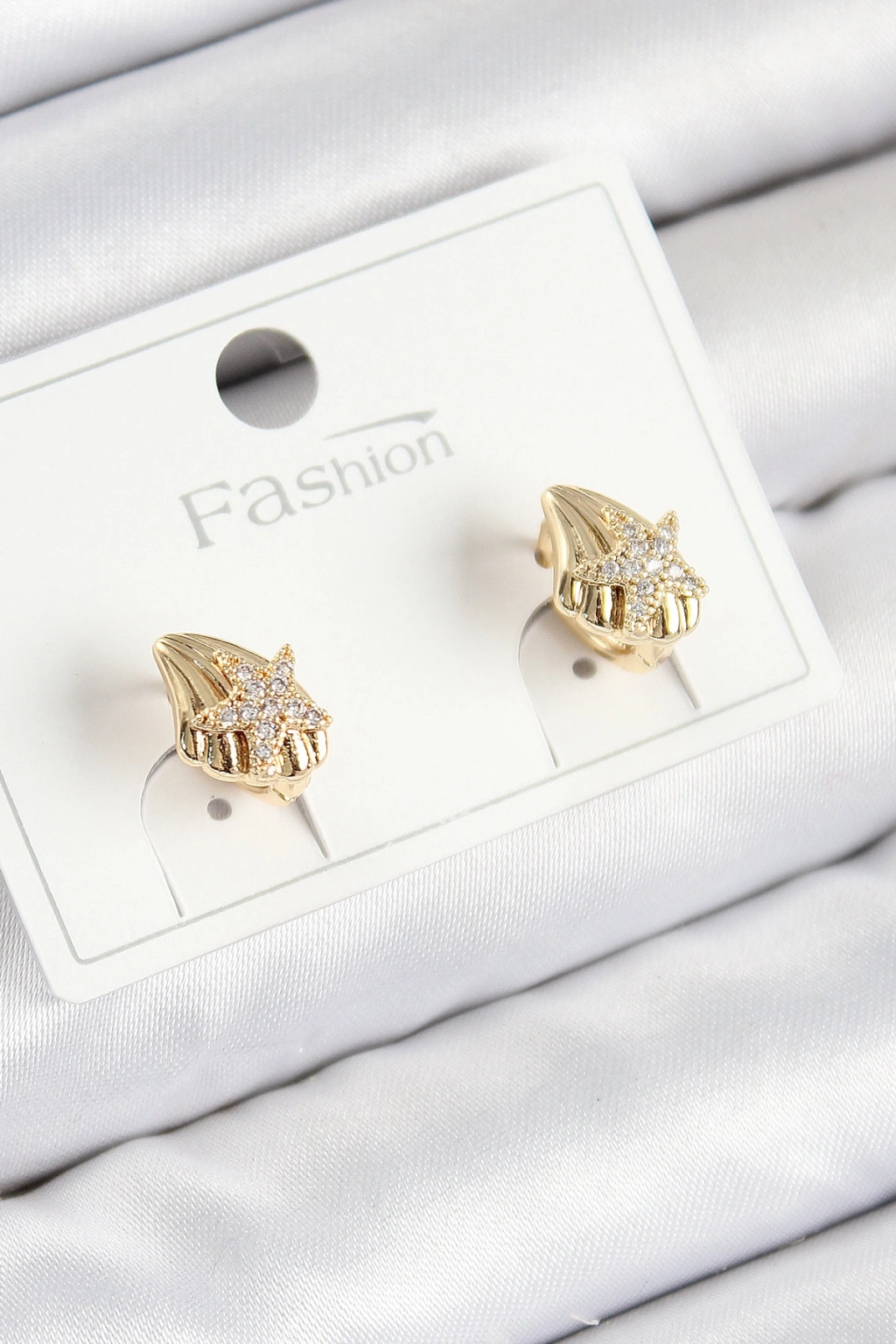 Pirinç Zirkon Taşlı Yıldız Model Gold Renk Çocuk Küpe