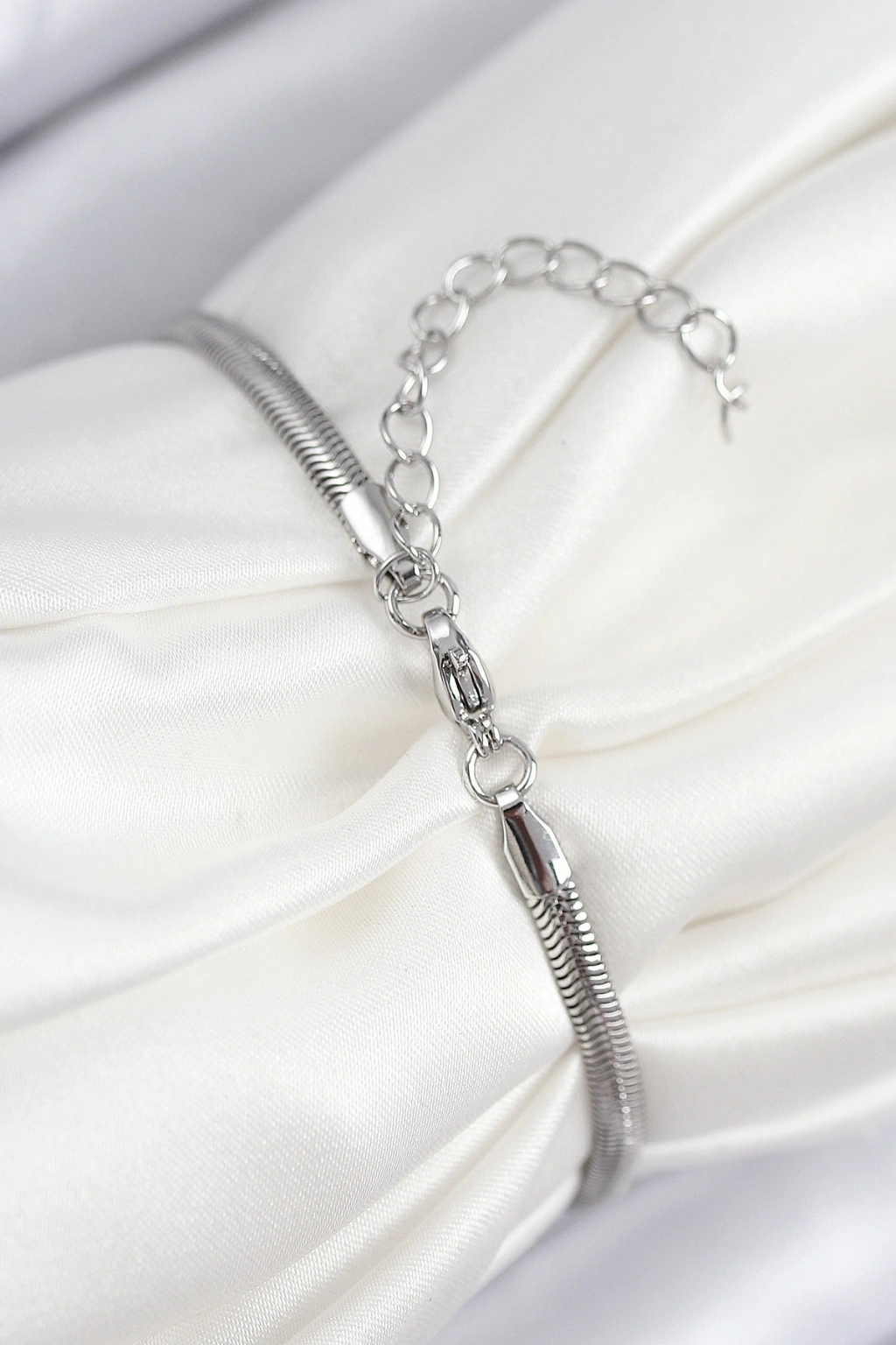 Pirinç Zirkon Taşlı Yıldız Model Gümüş Renk Kadın Bileklik