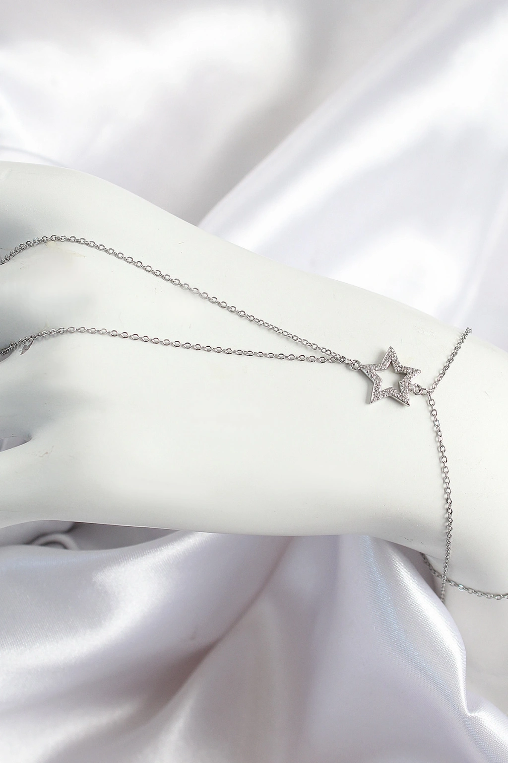 Pirinç Zirkon Taşlı Yıldız Model Gümüş Renk Kadın Şahmeran
