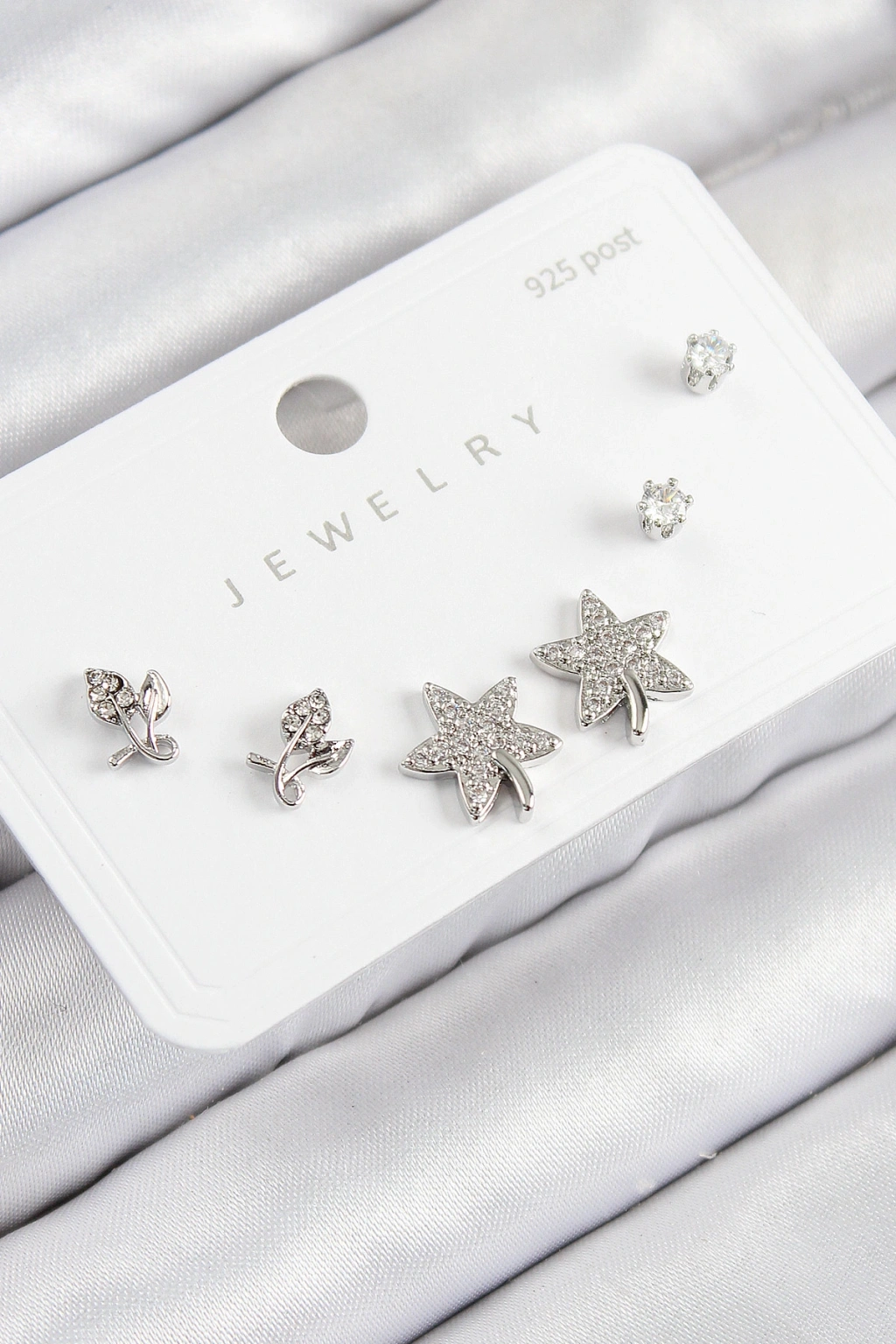 Pirinç Zirkon Taşlı Yıldız Ve Gül Model Gümüş Renk 925 Ayar Gümüş Çivi Kadın Küpe Set