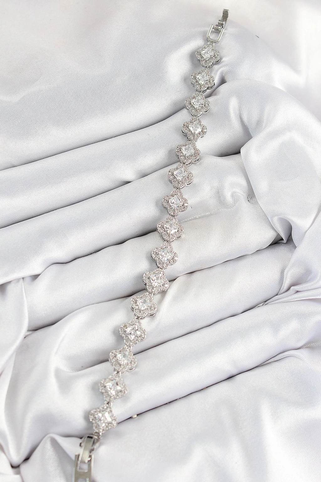 Pirinç Zirkon Taşlı Yonca Baget Model Gümüş Renk Vıp Seri Kadın Bileklik