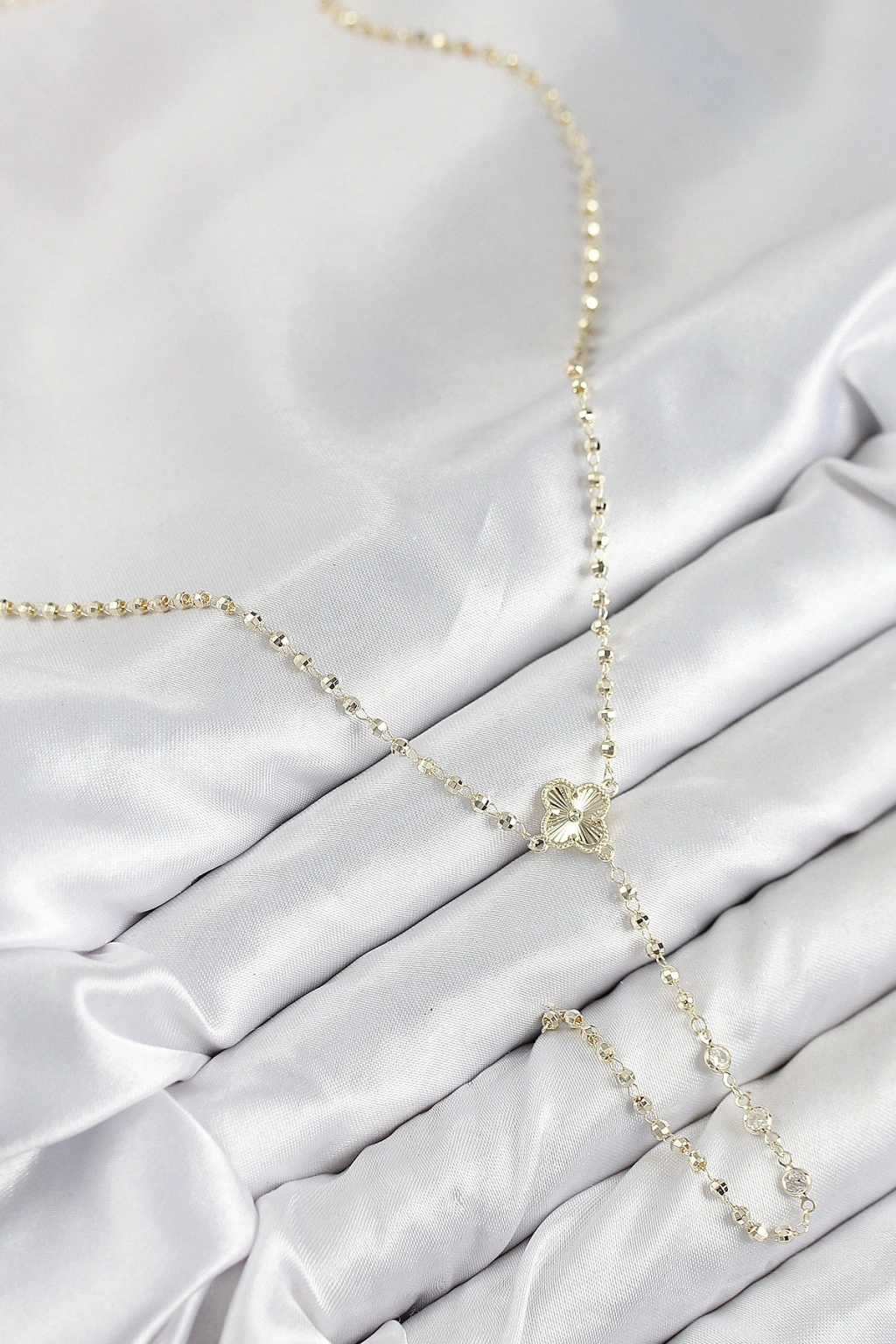 Pirinç Zirkon Taşlı Yonca Model Gold Renk Kadın Y Kolye