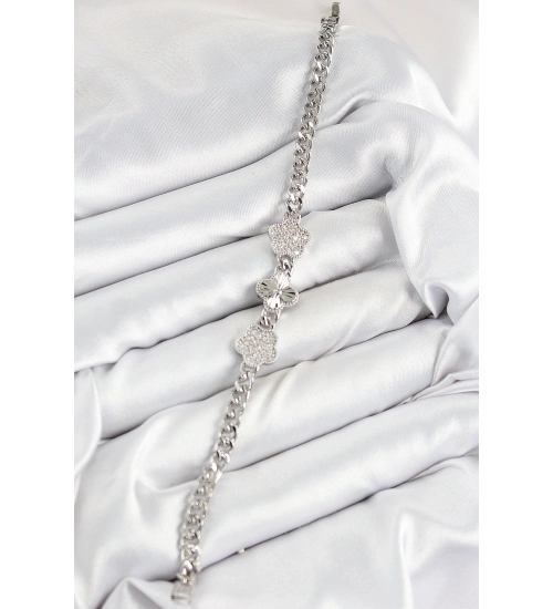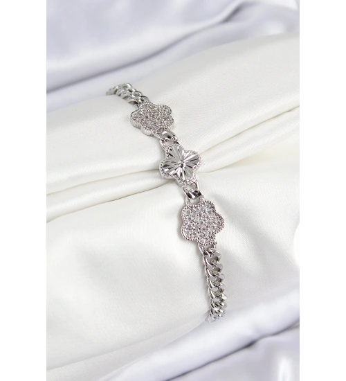 Pirinç Zirkon Taşlı Yonca Model Gümüş Renk Kadın Bileklik