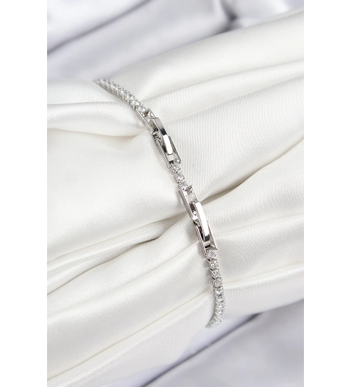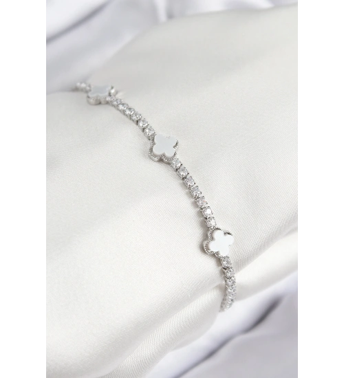 Pirinç Zirkon Taşlı Yonca Model Gümüş Renk Kadın Bileklik