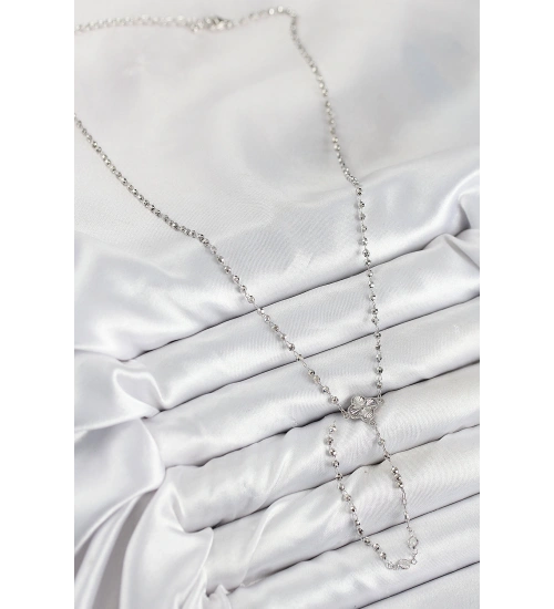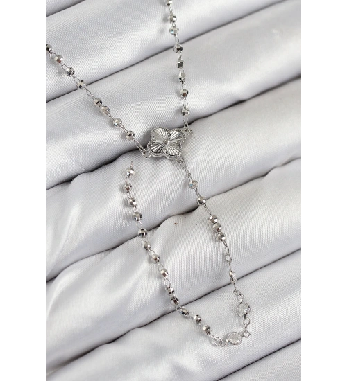 Pirinç Zirkon Taşlı Yonca Model Gümüş Renk Kadın Y Kolye