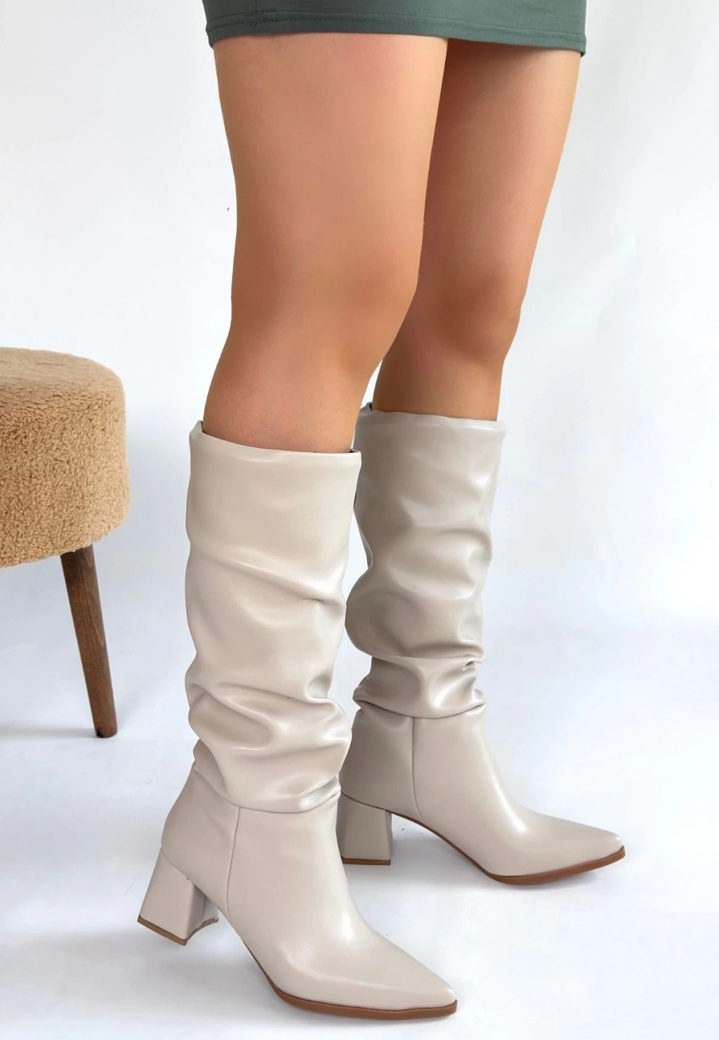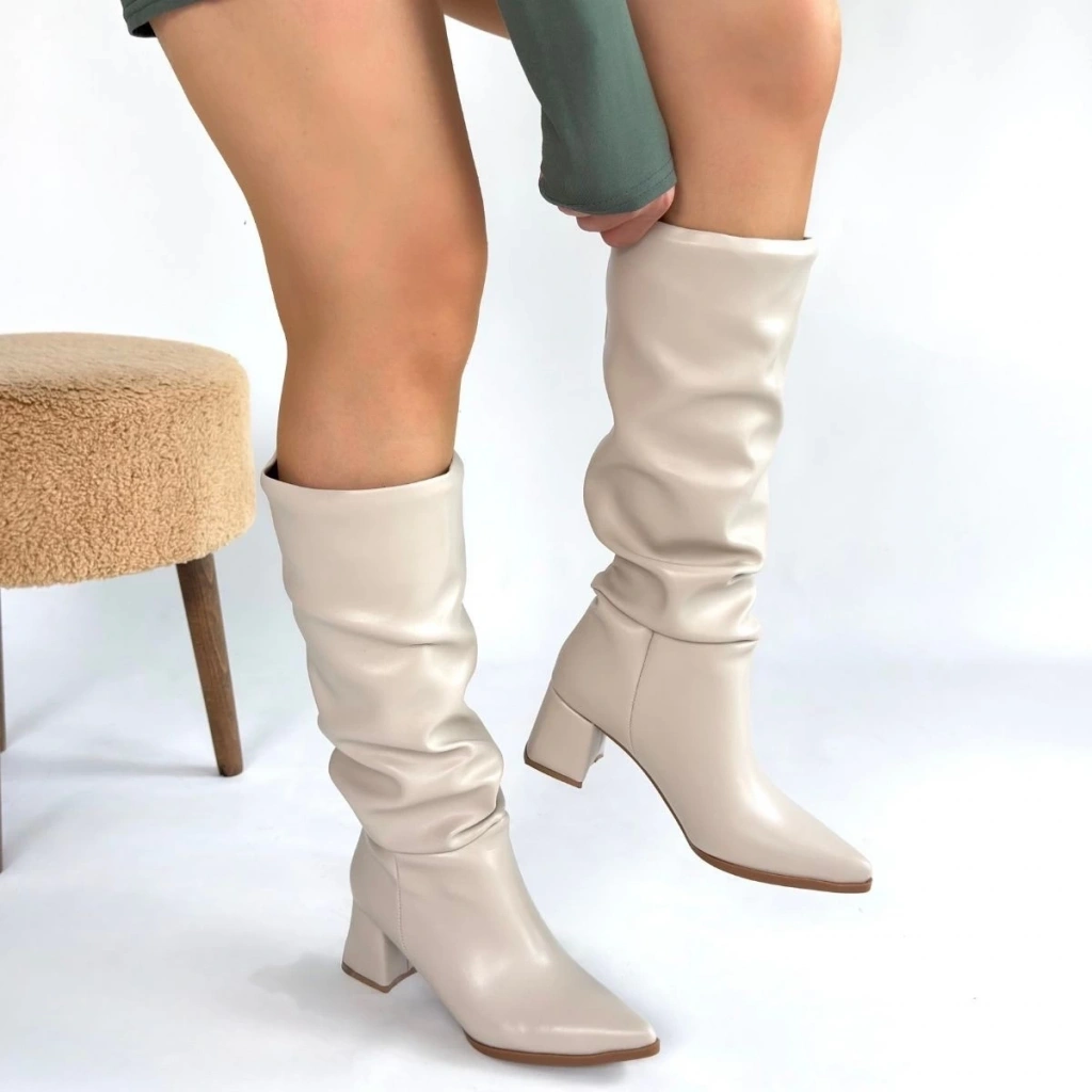 Tiyan Bej Cilt Topuklu Çizme