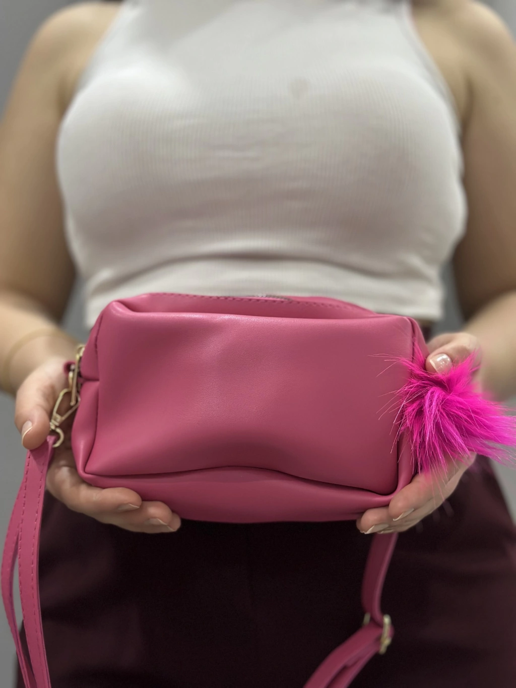 Şık ve trend bir görünüm elde etmek isteyen kadınların vazgeçilmezi ponpon fuşya cilt çanta, gardırobunuzun favori parçası olmaya aday!