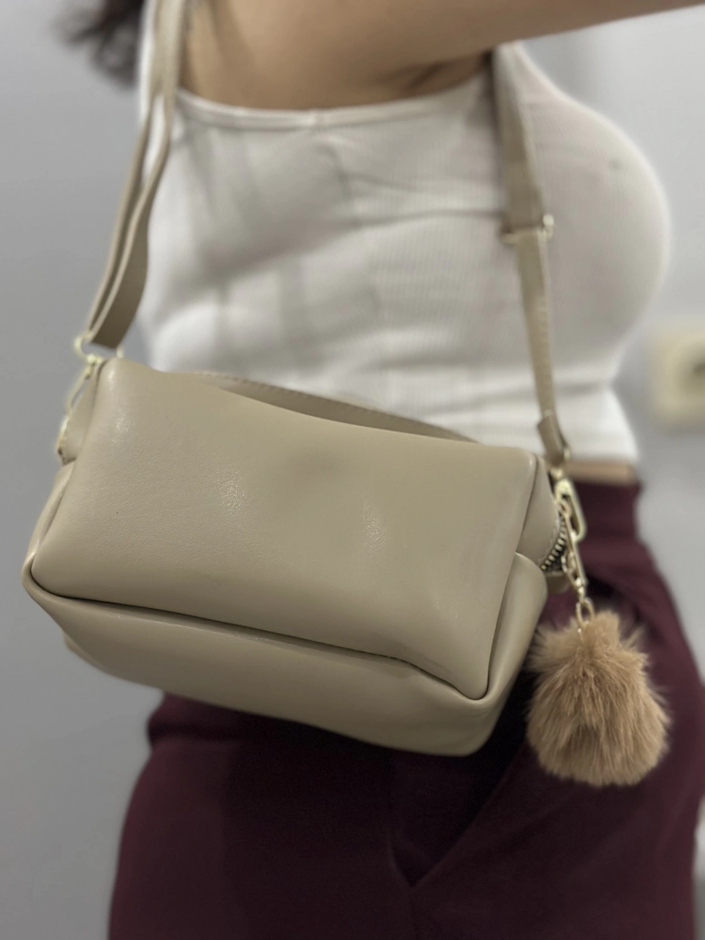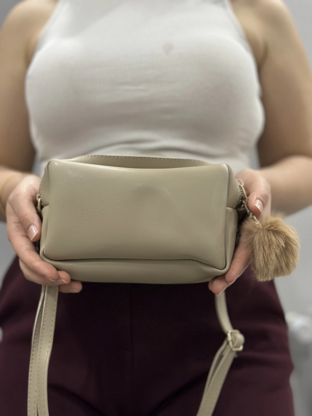 Modaya uygun ve kullanışlı Ponpon Vizon Cilt Çanta ile şıklığınızı tamamlayın!