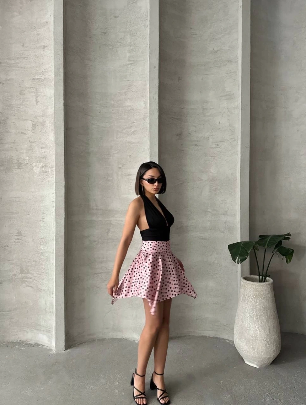 Deri garnili kaz ayağı kaşe etek siyah h24604