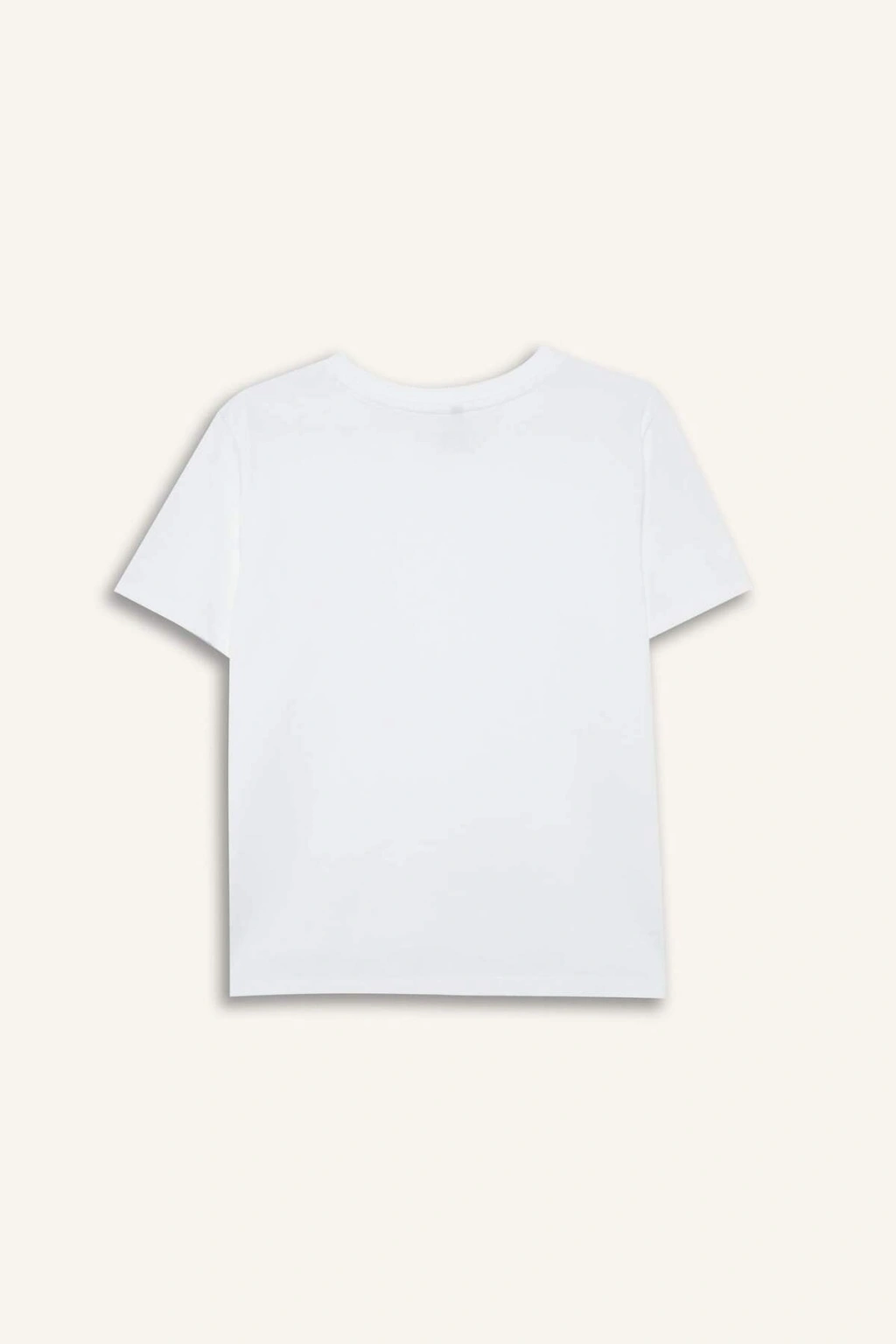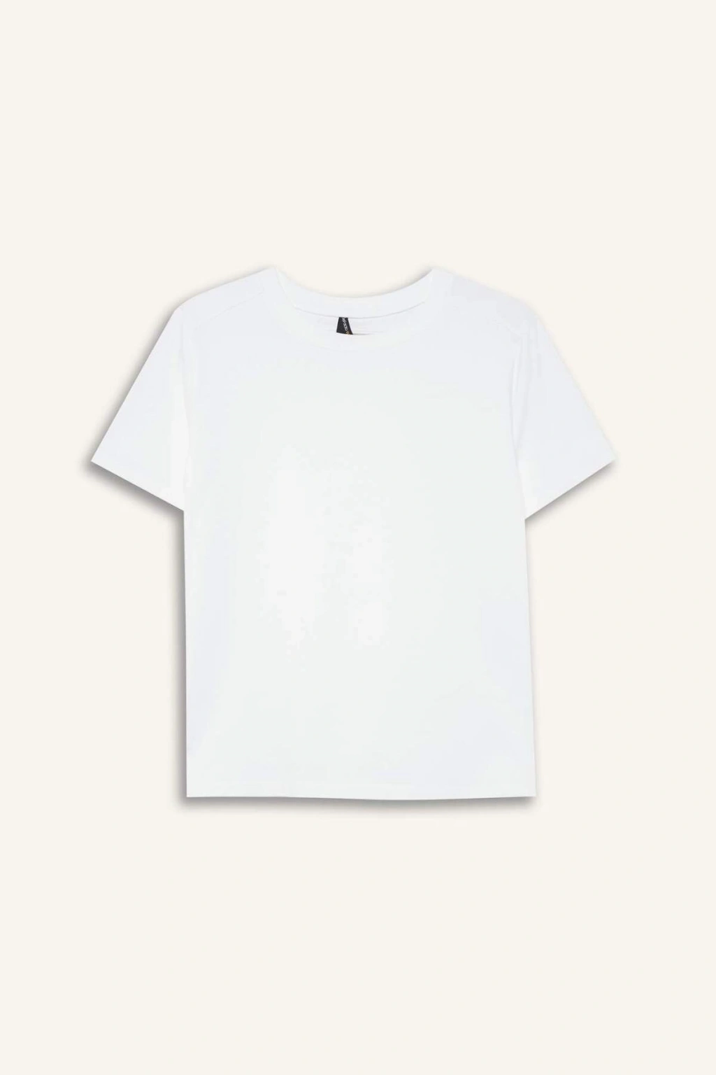 %100 Pamuk Oversize Geniş Kalıp Bisiklet Yaka Basic Düz Kısa Kollu Tişört Beyaz