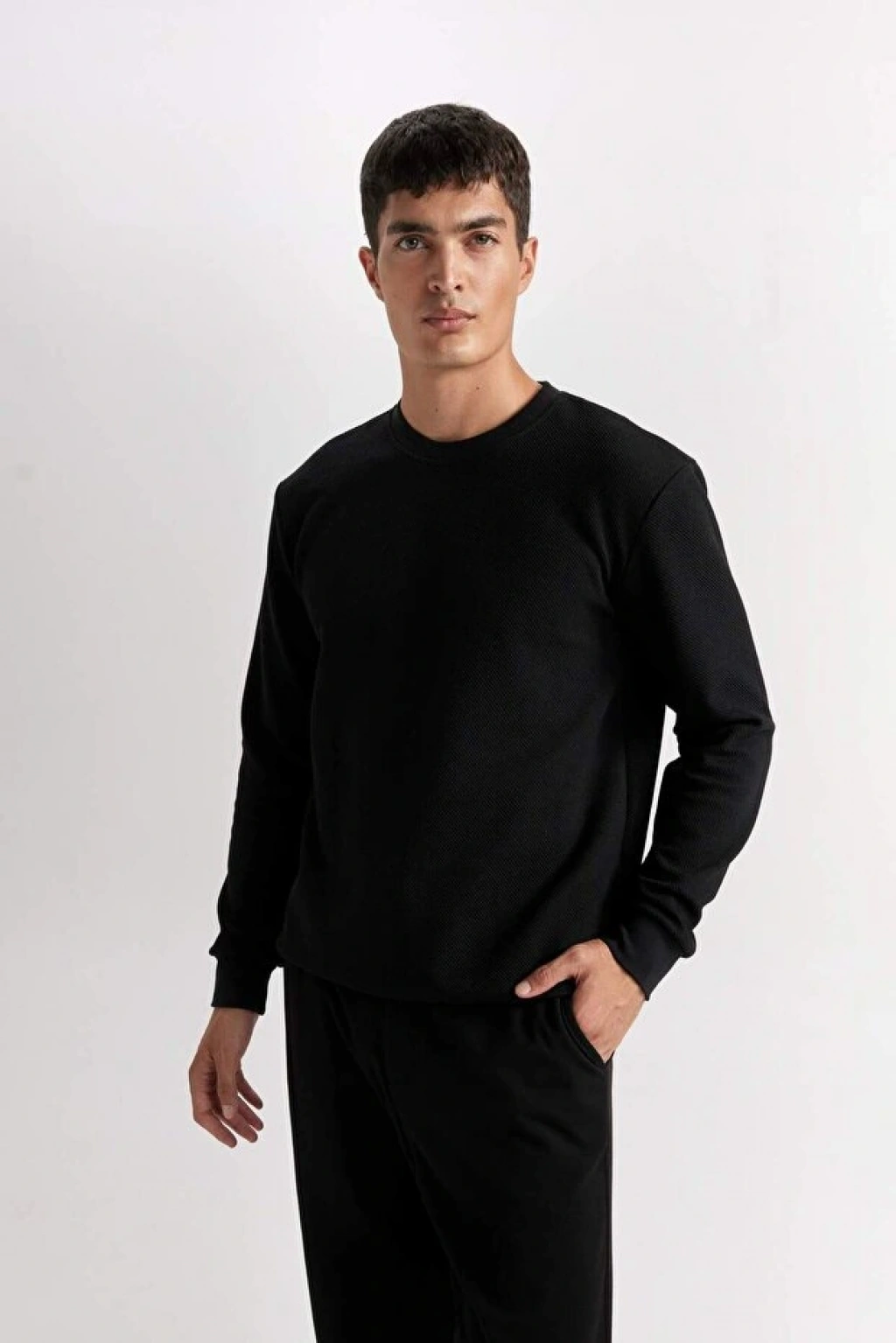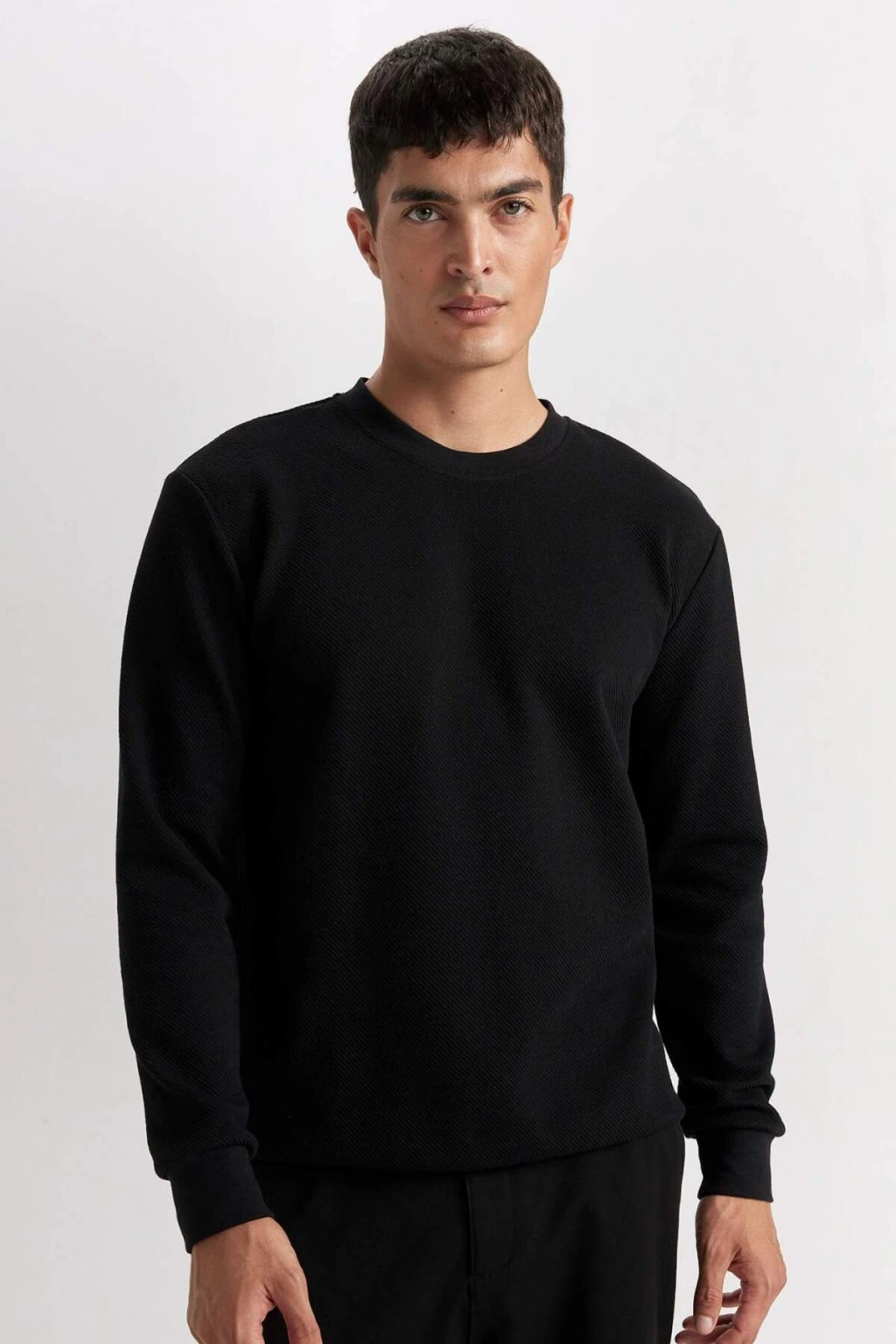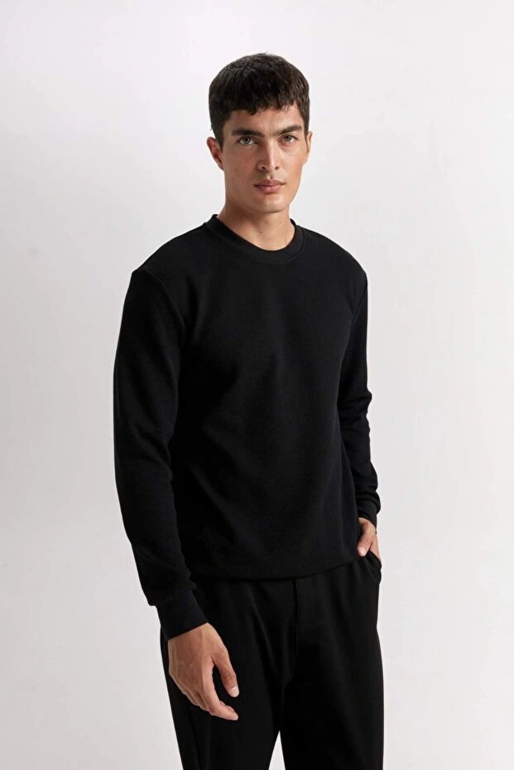 Şıklığı ve rahatlığı bir arada sunan Regular Fit Bisiklet Yaka Jakarlı Sweatshirt, günlük şıklığınızı tamamlıyor.