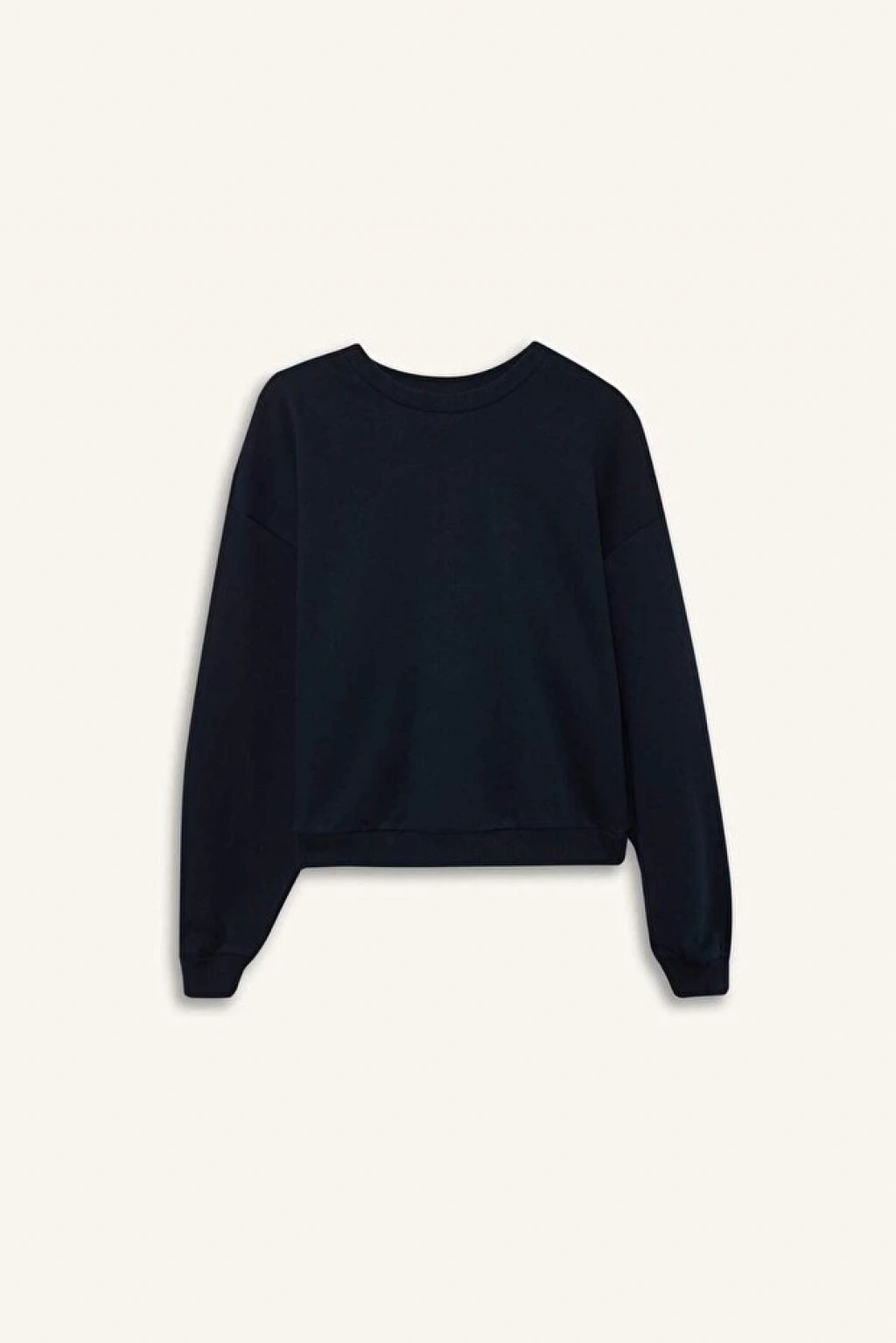 Regular Fit Bisiklet Yaka Kalın Basic Düz Sweatshirt