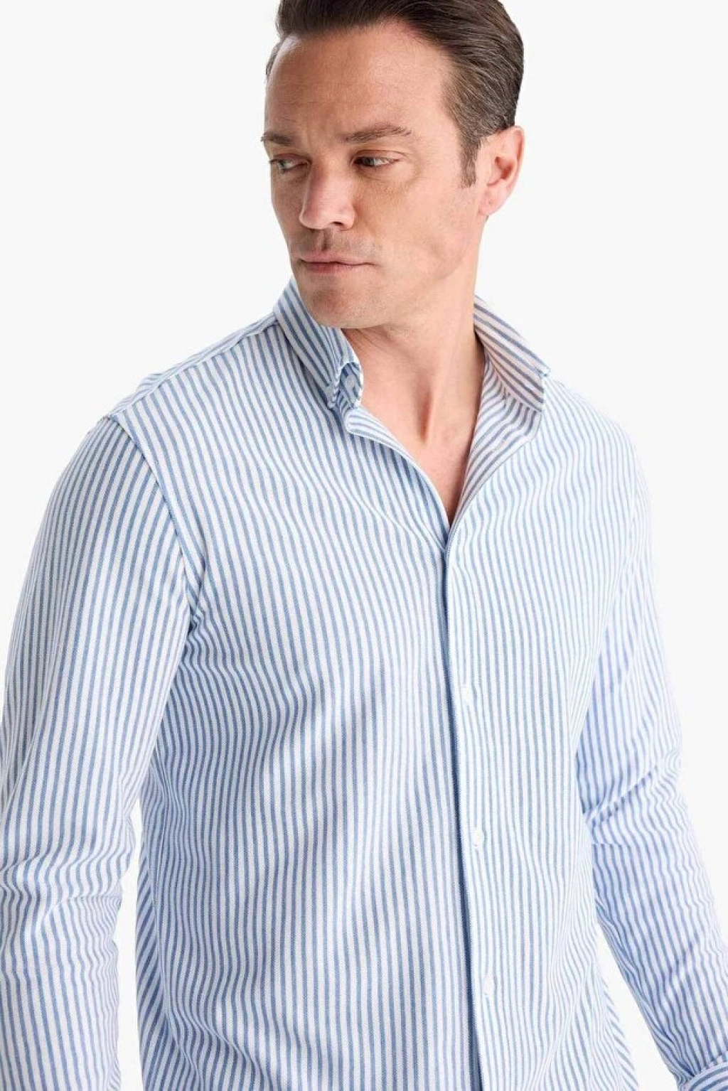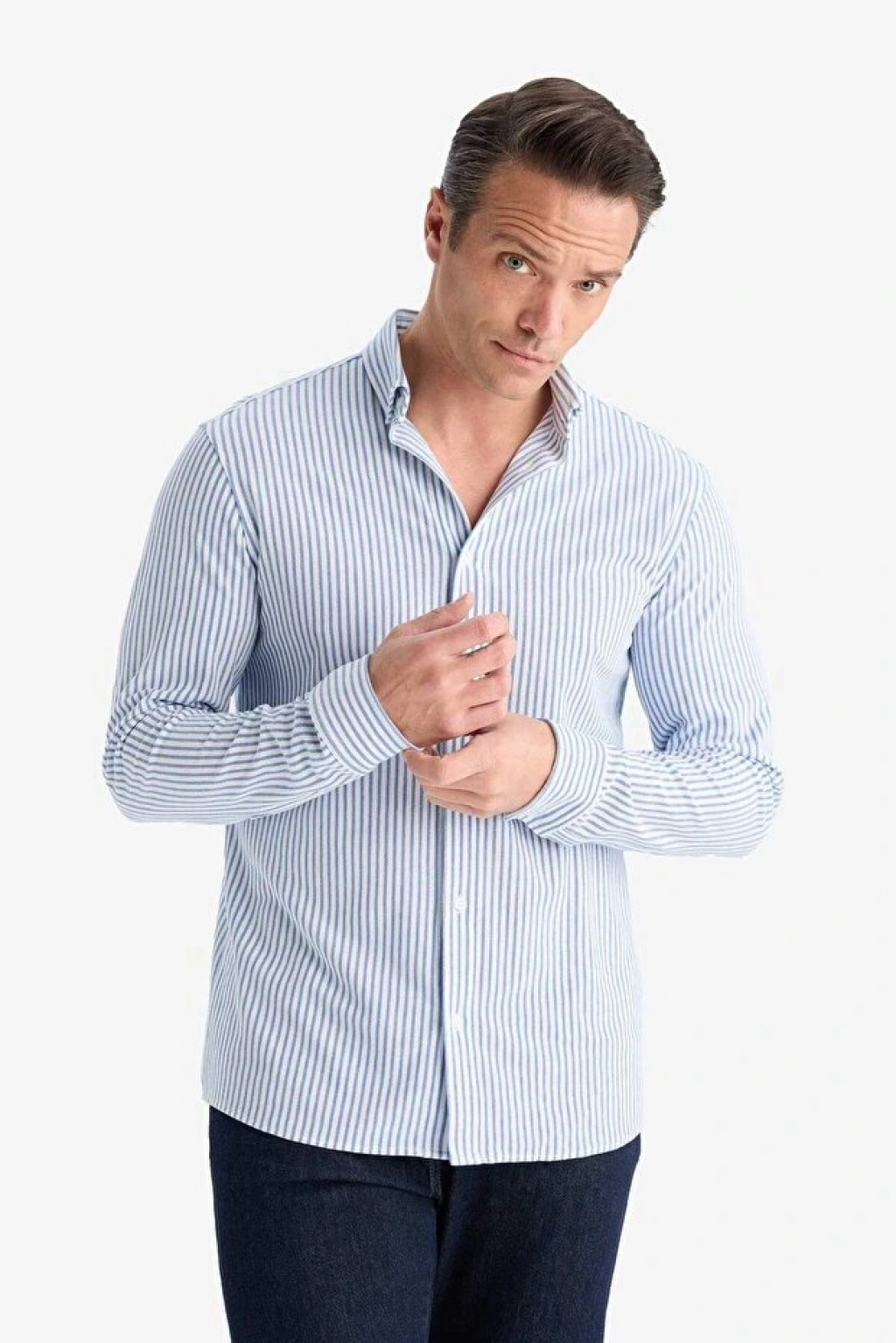 Klasik çizgili deseniyle dikkat çeken bu Regular Fit penye gömlek, polo yaka tasarımıyla zamansız bir şıklık sunar.