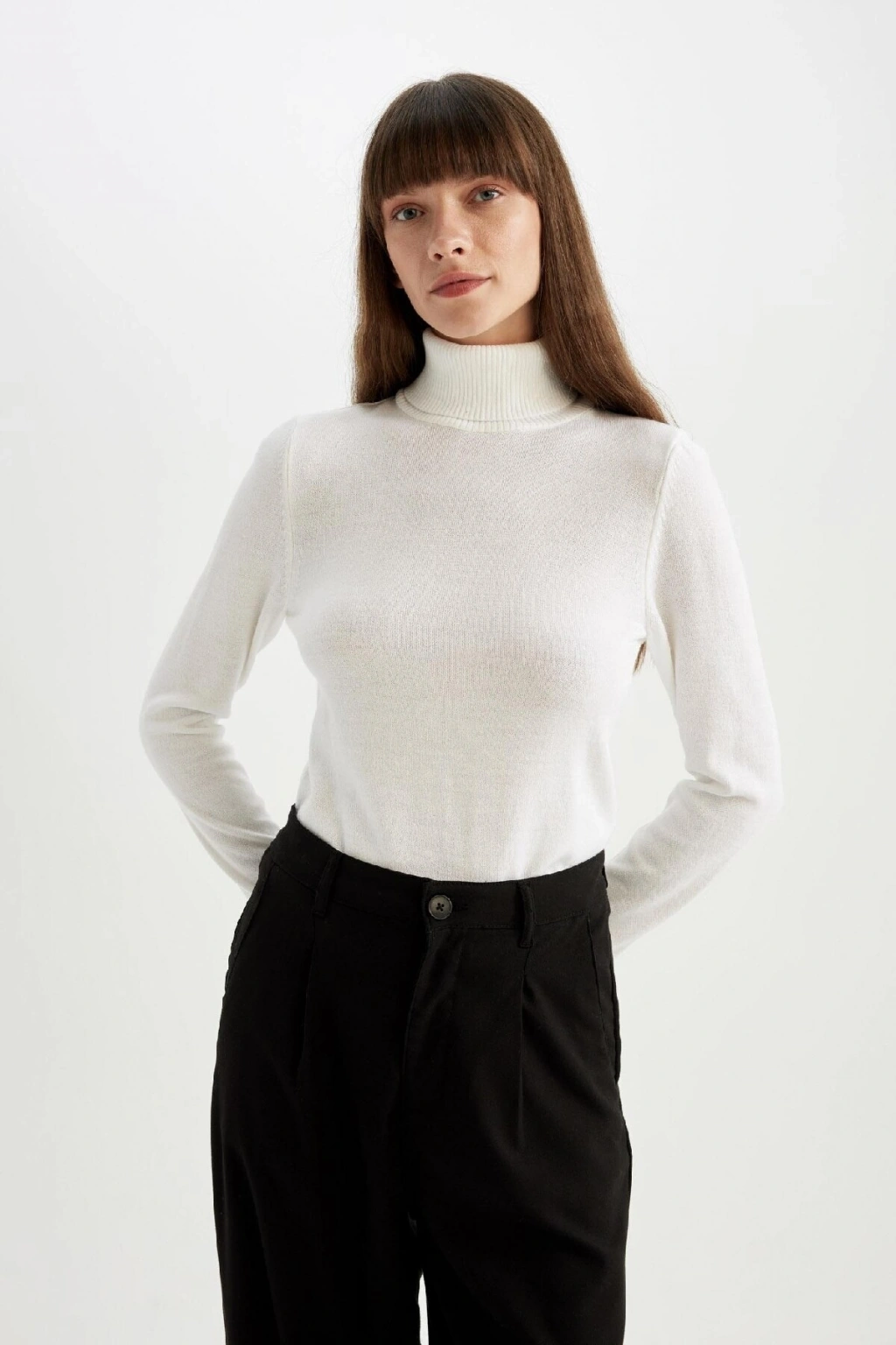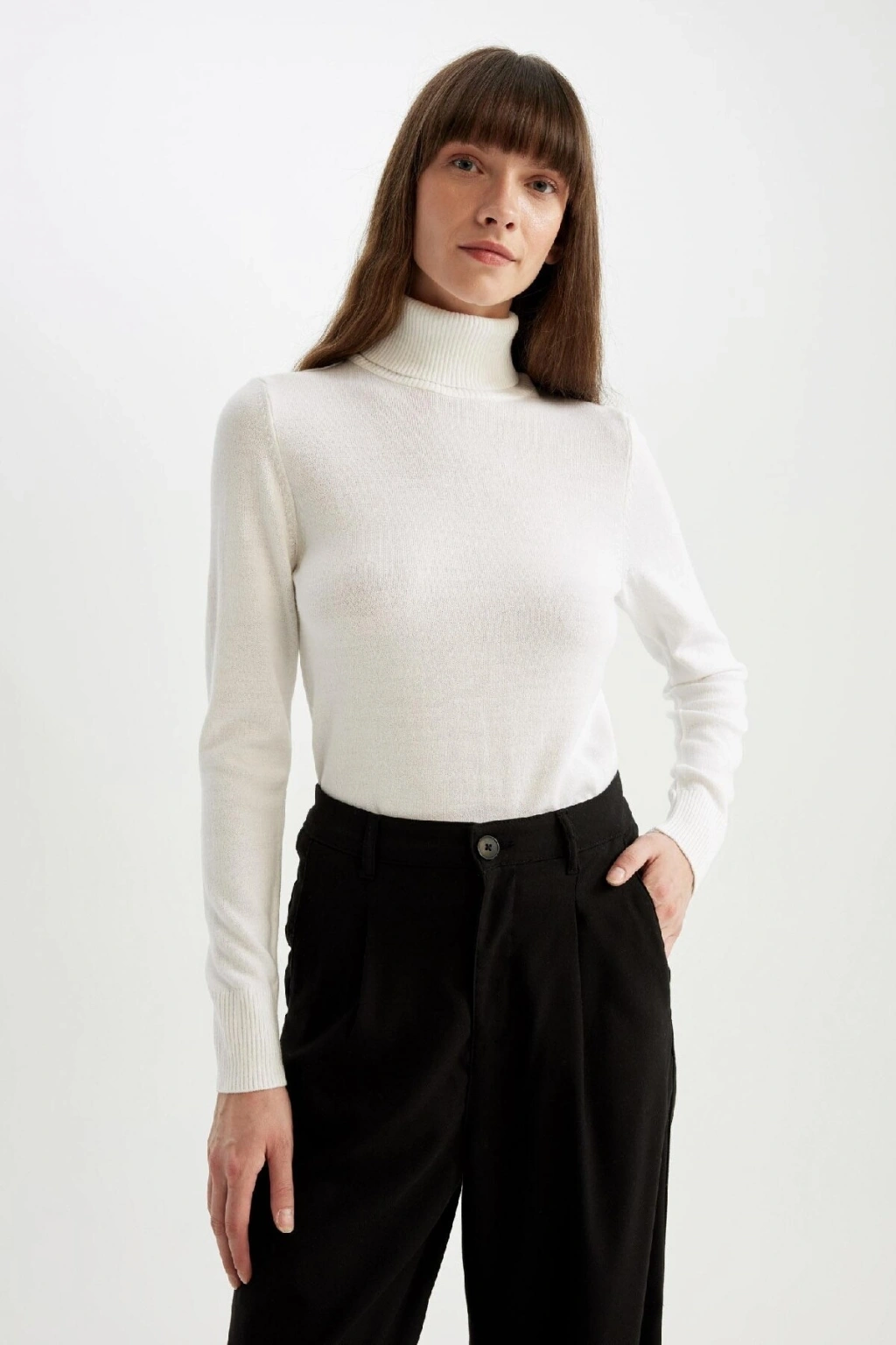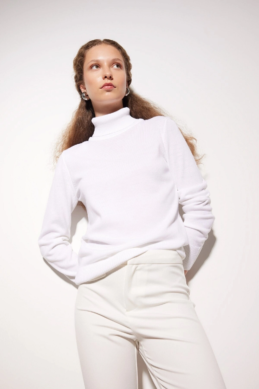Regular Fit Yumuşak Dokulu Balıkçı Yaka Basic Düz Triko Kazak H1651az24wn Beyaz